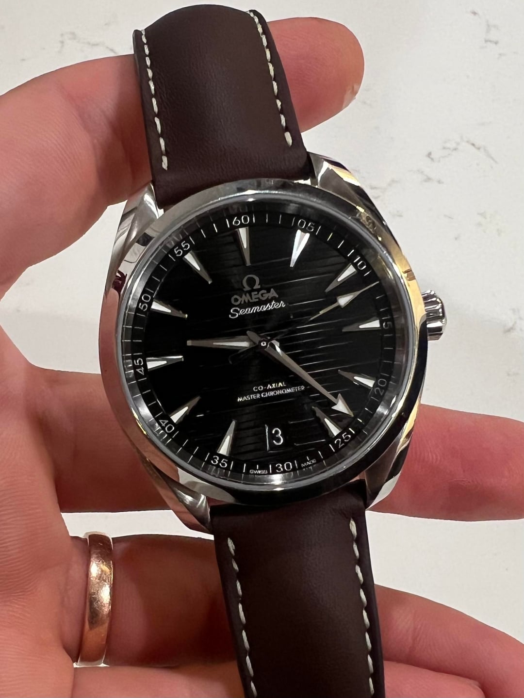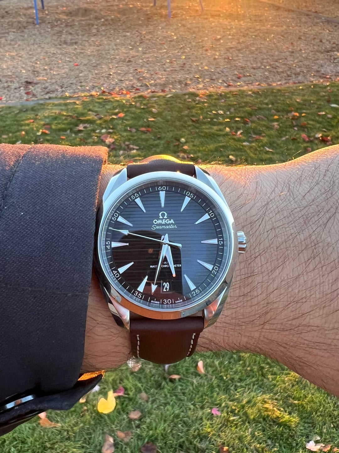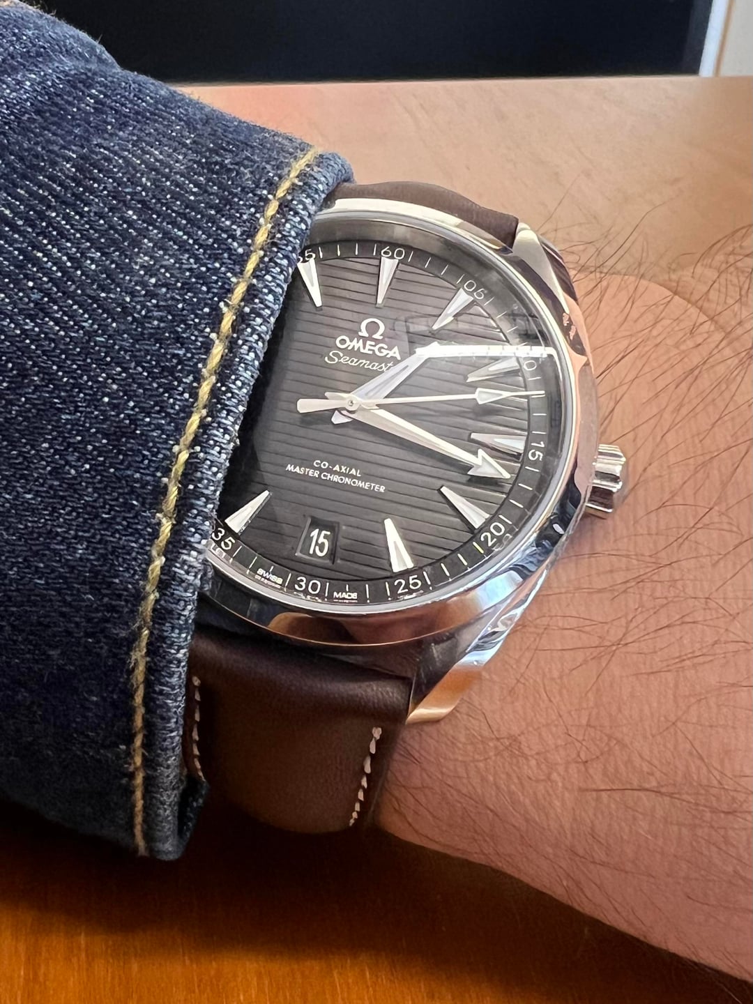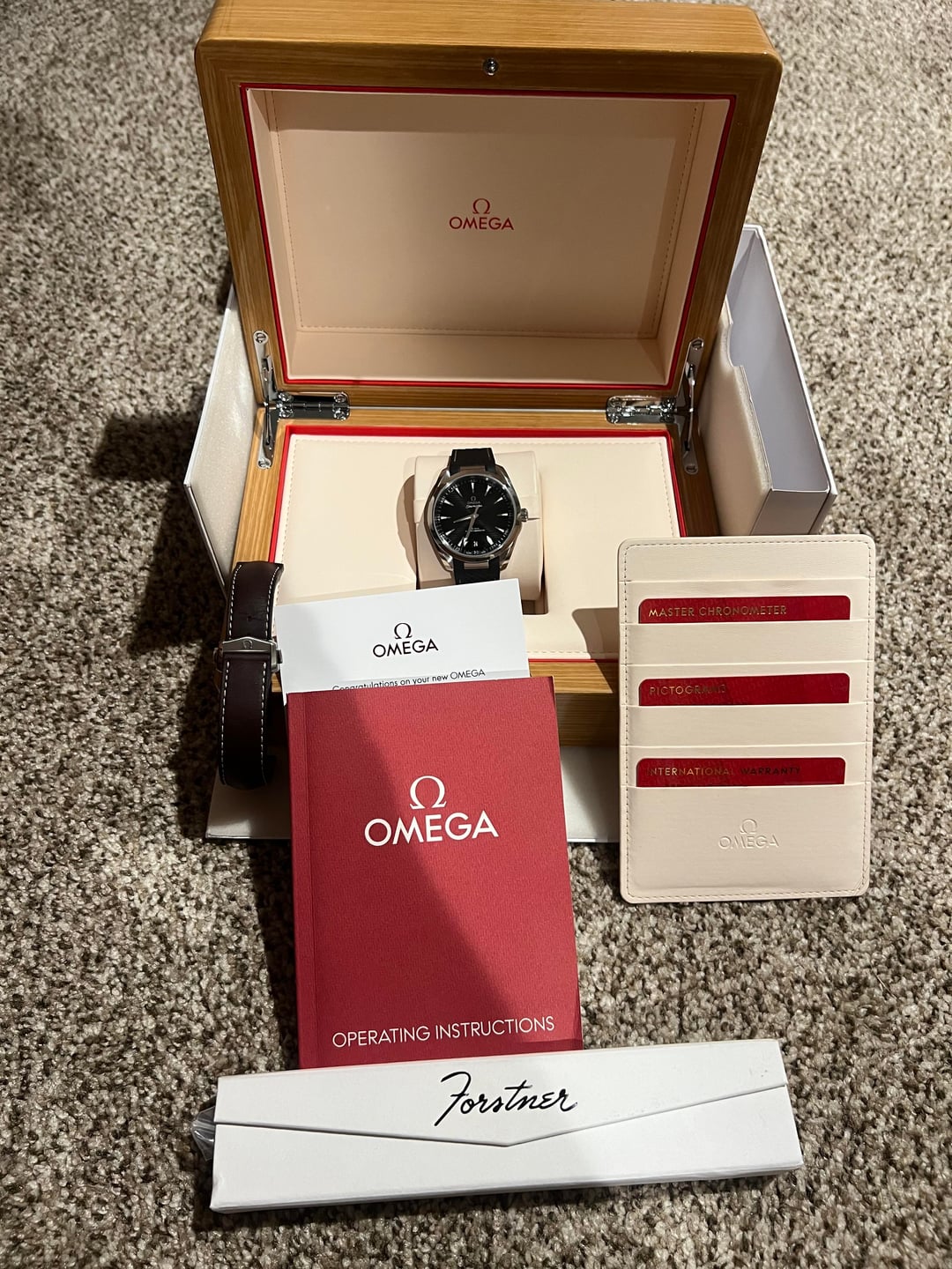 Hello Watch Exchange! With a heavy heart, I’m selling my 41mm Omega Aqua Terra Teak Dial. Reference # 220.12.41.21.01.001. Asking price is $4,200.00 shipped in the CONUS. This comes with the OEM Rubber, and additional OEM leather with extra clasp, and a Forster 1450 bracelet. Box and papers are included as well. Year is 2022. This is truly a one and done GADA watch. Please let me know if you have any questions! Thanks for looking :)