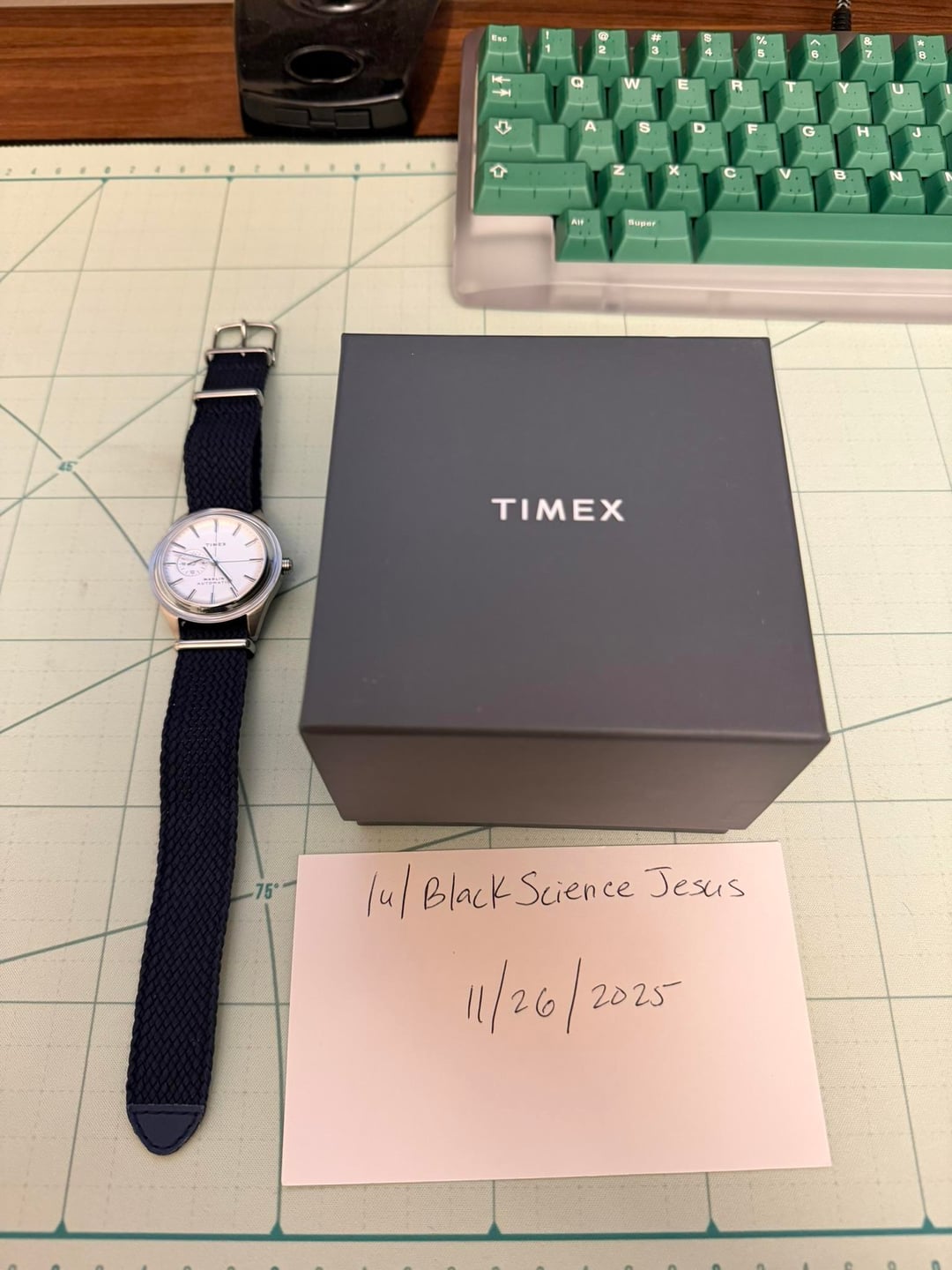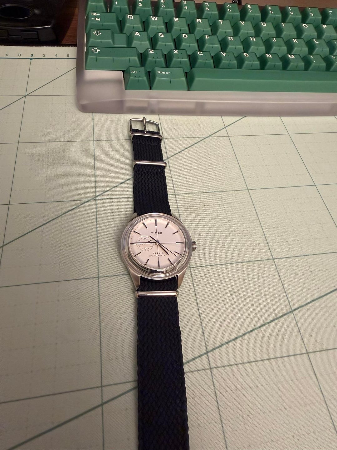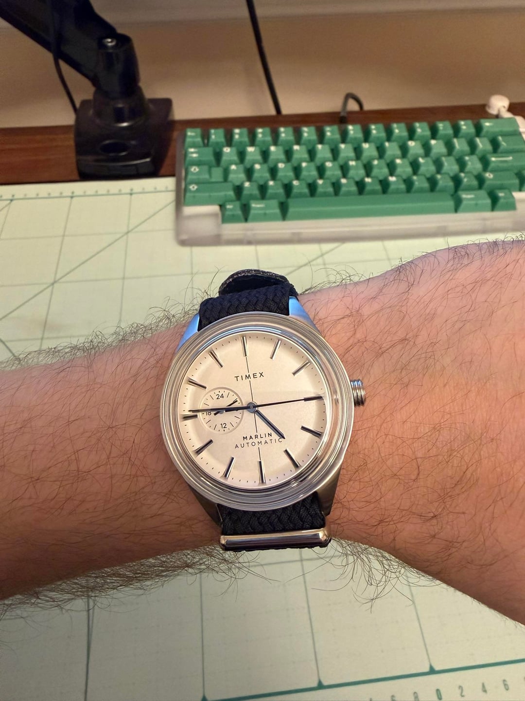 Looking for $275 Shipped OBO Bought in September, still in like new condition. Beautiful watch, I'm just not wearing it enough. More info on the watch here - [https://timex.com/products/marlin-jet-automatic-38mm-fabric-strap-watch-tw2v72300?srsltid=AfmBOooOVDjTfRuNFqSNK3Bcvj\_FDyqbs6O-aUSHzeD8-pToLMAf1cCH](https://timex.com/products/marlin-jet-automatic-38mm-fabric-strap-watch-tw2v72300?srsltid=AfmBOooOVDjTfRuNFqSNK3Bcvj_FDyqbs6O-aUSHzeD8-pToLMAf1cCH) It is currently in preorder for $319, not including shipping and tax.