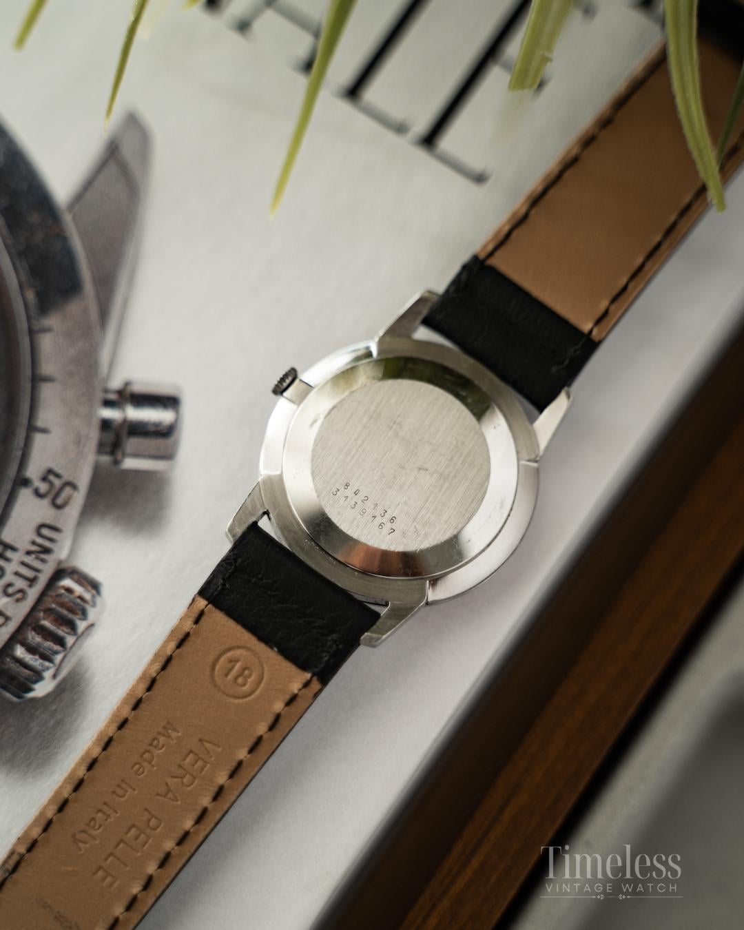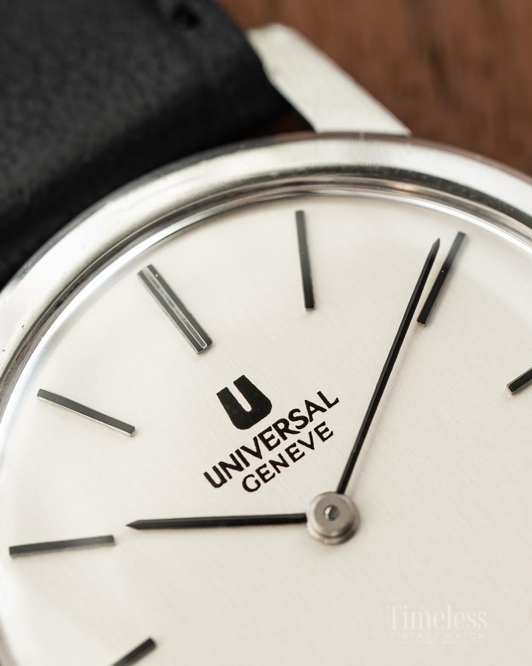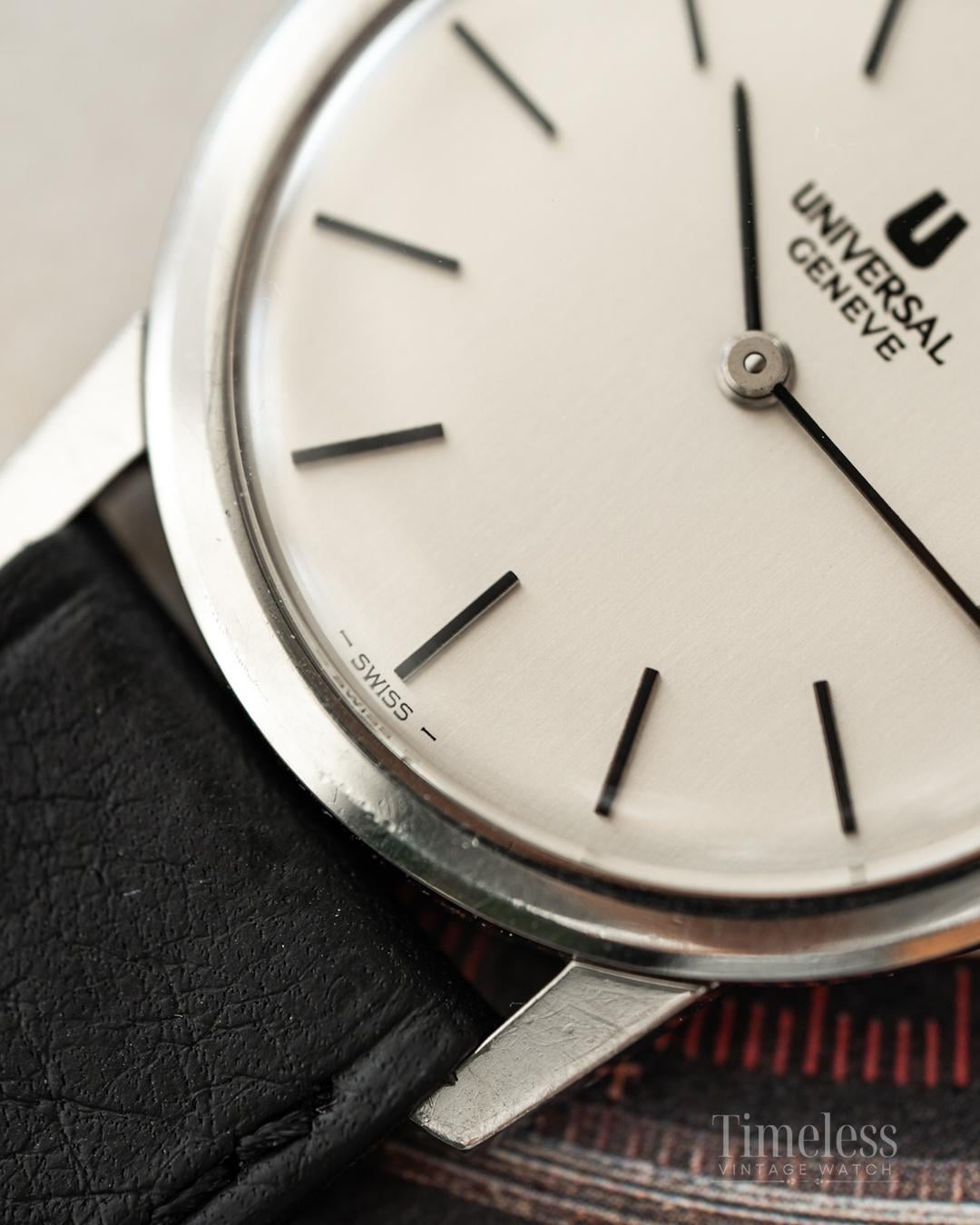 Direttamente dagli anni ‘70, propongo questo raffinato Universal Genève ultra piatto Ref. 842136 con movimento meccanico UG 1-42. Linee sottili, proporzioni perfette, un quadrante pulito che cattura la luce con eleganza. Universal Genève in quegli anni produceva alcune delle forme più pure ed eleganti dell’orologeria. Un orologio essenziale, ultra sottile, leggero al polso e incredibilmente moderno nonostante i suoi oltre 50 anni sulle spalle. Perfetto per chi cerca un segnatempo elegante, pulito e ricco di storia — ma senza tempo. \-Timestap come ultima foto nella galleria. \- L'orologio si trova in Italia, spedisco gratuitamente in Italia, in Europa con €20 e nel resto del mondo da concordare in base alla località. \- METODI DI PAGAMENTO: Paypal, bonifico bancario, Mastercard, Amex, Klarna. Condizioni generali: Il calibro è marciante e tiene bene il tempo. Orologio in acciaio inossidabile, cassa in ottime condizioni. Quadrante in ottime condizioni. Vetro plexiglas in ottime condizioni Impermeabilità non garantita. Caratteristiche dell'orologio: Anno: 1970 circa Referenza: 842136 Movimento: Universal Geneve a carica manuale 1-42 con 17 rubini, 21.600 a/h e 43 h di riserva di carica. Diametro cassa: 32,5mm Spessore cassa: 6,5 mm Lug to lug: 39 mm Cassa: acciaio inossidabile Fondello: acciaio inossidabile firmato Vetro: acrilico Quadrante: argento soleil con indici a bastone neri. Corona: originale logata Cinturino in pelle nuovo aftermarket Per polsi max 20,5 cm Dotazione: orologio, pochette in velluto blu