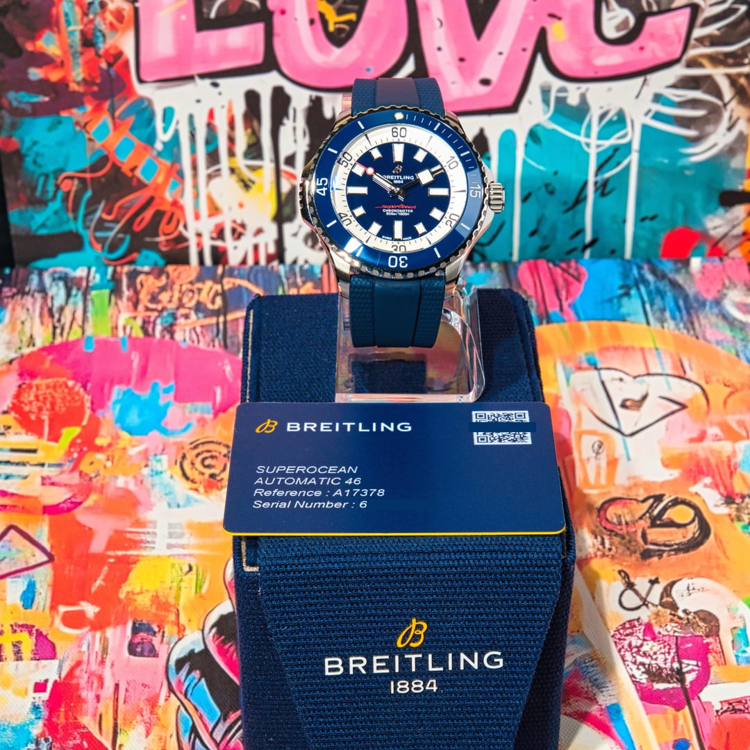 Breilting Superocean 46.  Box and papers. Watch is in very good condition.   Please see photos for condition. Watch, box, warranty card.  The OEM strap is cut down a little, but fits up to about 7.75”. Breitling has a great micro-adjust on this clasp.  Please let me know if you have any questions. New seller on Reddit, but have over 10k sales and 100% feedback on eBay. Please comment first before messaging. $3250 including insured shipping. Zelle or Wire. [Timestamp.](https://imgur.com/a/12-5-25-so-46-timestamp-cwkn9eV)
