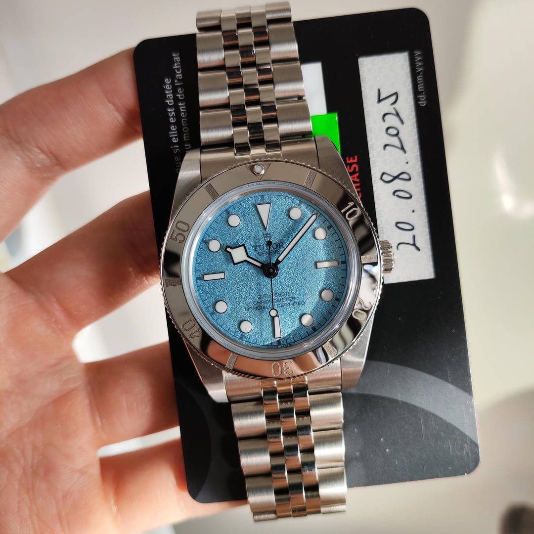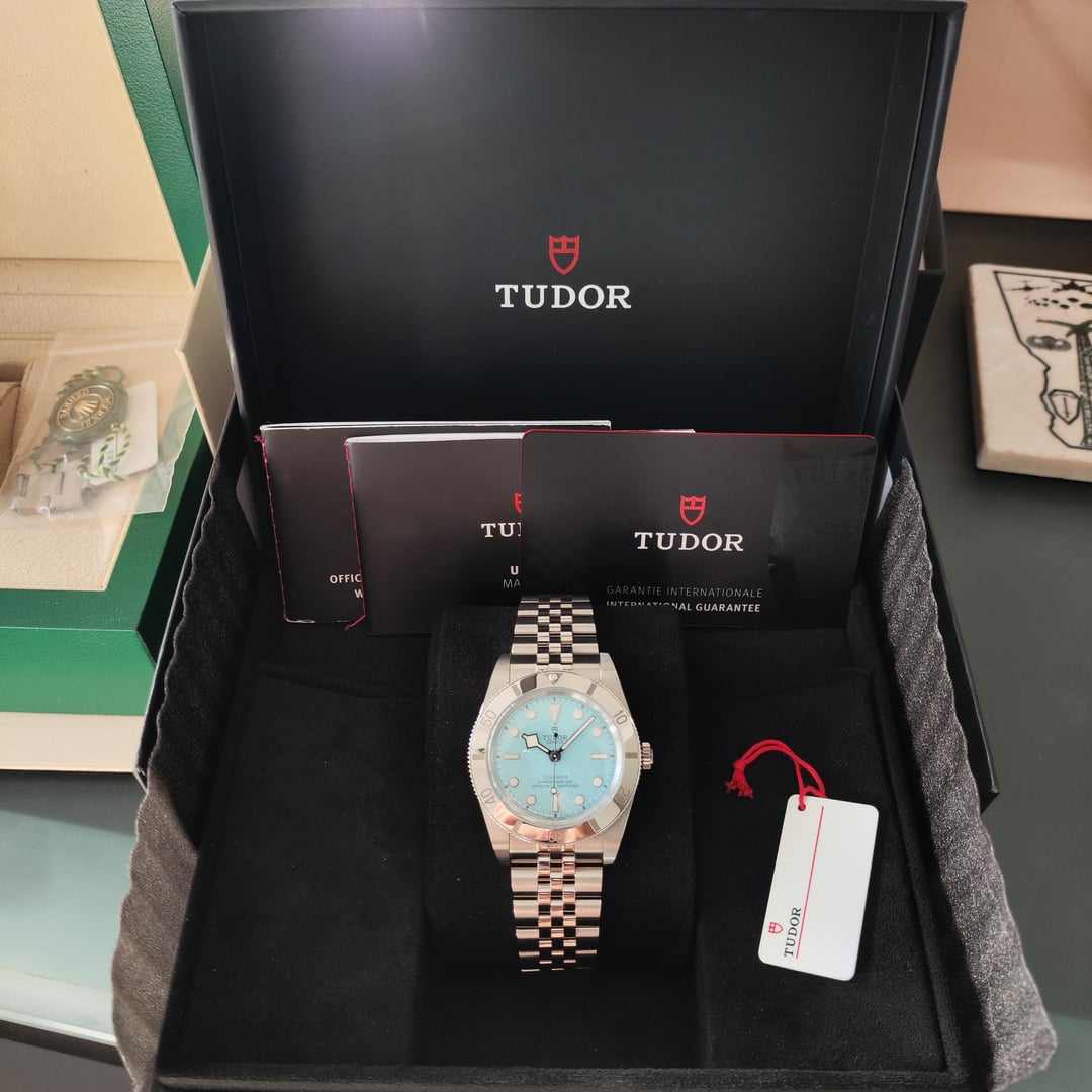 **Tudor Black Bay 54 37mm M79000-0001** Condition: Preowned - Excellent Box and Papers: Yes, dated August 2025 (Warranty till August 2030) What's Included: Watch, Double box, Papers, White Tage, Full Links 💰 Price: USD$4,700 FIRM (Including Shipping, I take care of all tax / duties to US) 💳 Payment Method: Zelle, Venmo, USDT, Wise 📫 Shipping Method: Worldwide via Fedex International Priority Timestamp: Last image in album Description: Hi Watchexchange, today I have a unique Tudor Black Bay 54 Lagoon Blue up for sale. Beautiful sand textured 'Tiffany Blue' dial and mirror polished bezel with all the things to love from a Black Bay 54 Price is firm, only PM if you are agreeable to the price or have questions about the piece. Happy to hop on a call to show the piece to any interested buyers! Not looking for any trades, thanks!