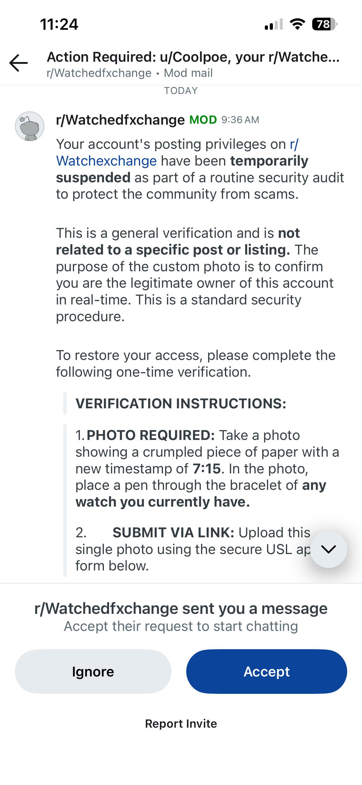 Banned from r/Watchedfxchange 🫨🫨🫨 Common scam trying to phish your account going around, be on the lookout and don’t click sus links.