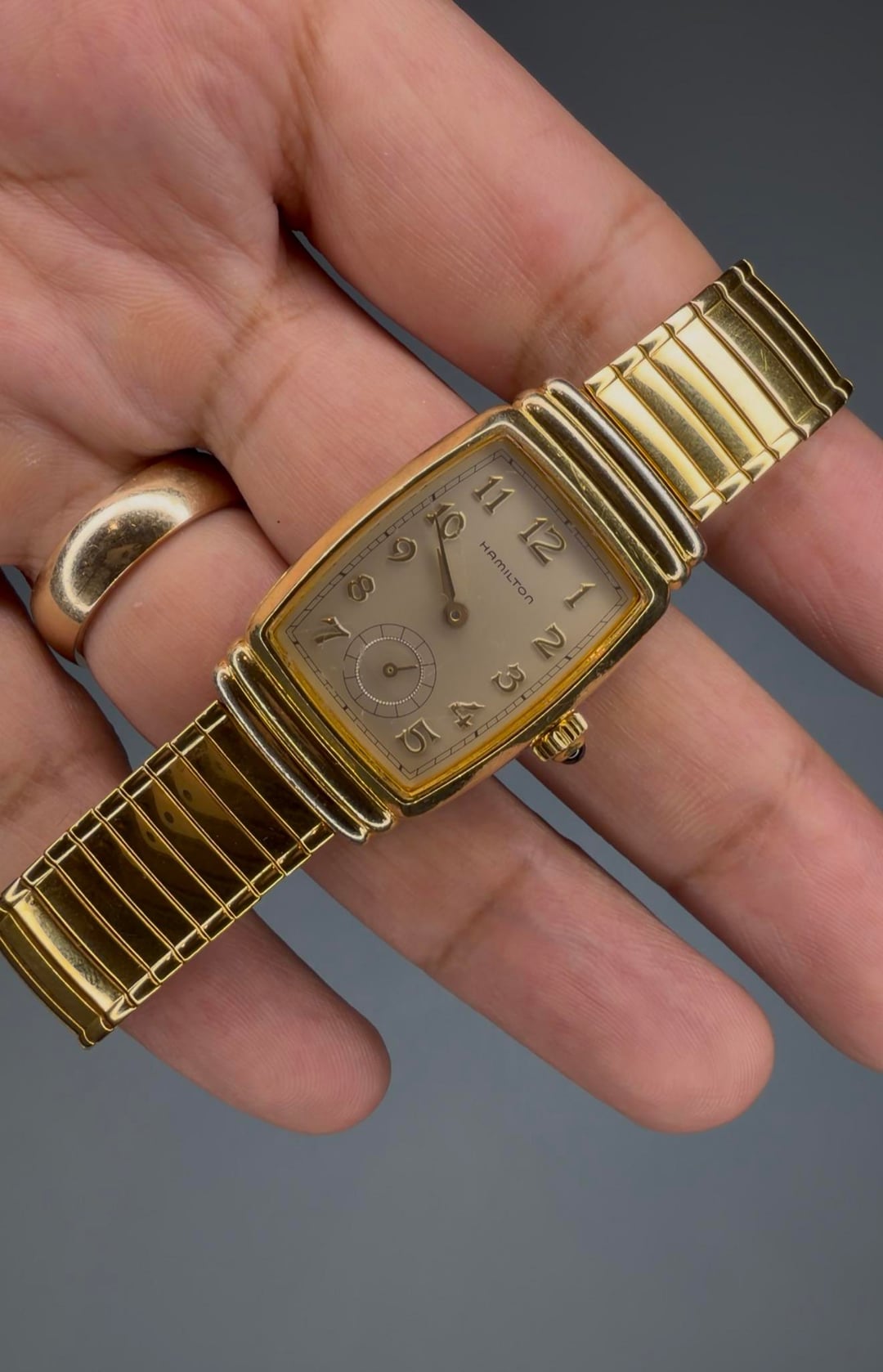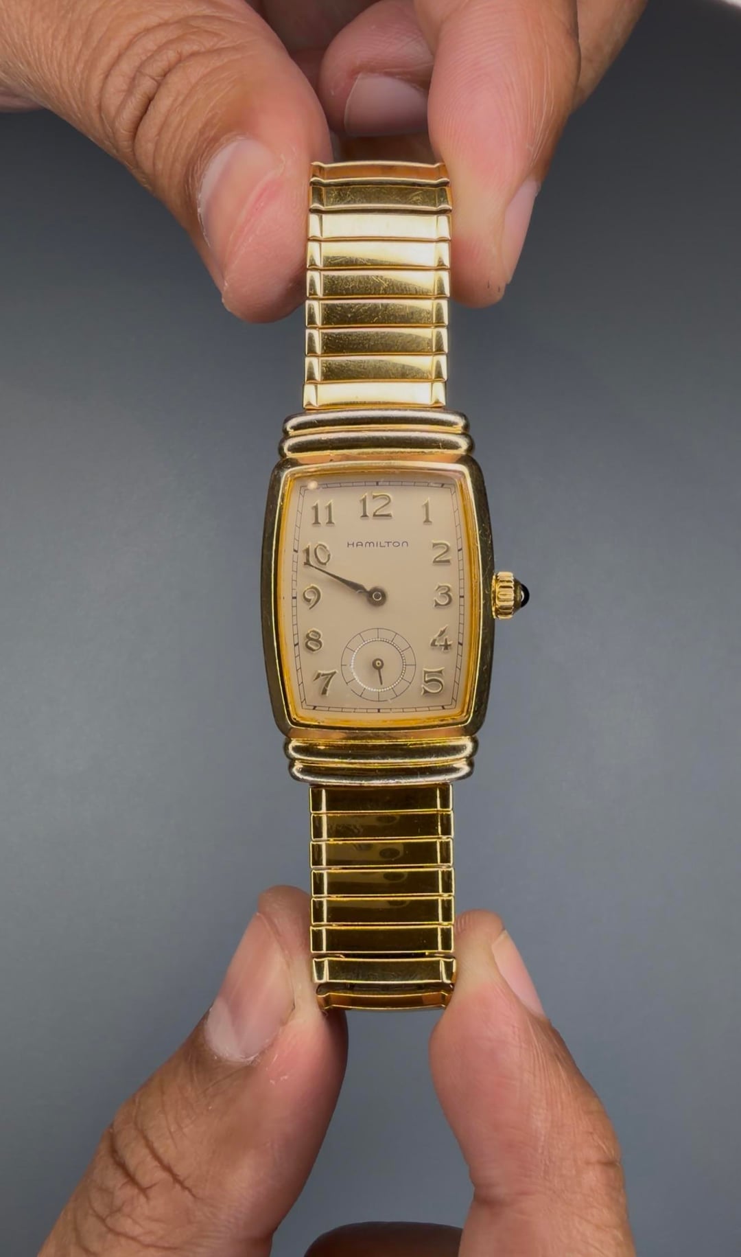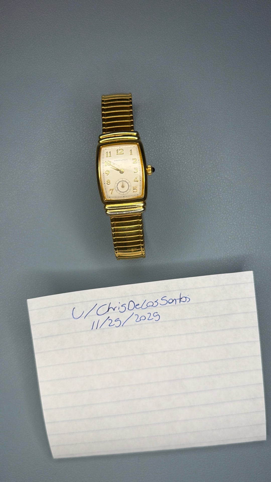 Hamilton Emerson 6248 Registered Edition -Details: A beautiful men’s neo-vintage watch in a gold colored case and stretch bracelet. Has breguet-like numerals, sub seconds dial, blue cabuchón, and light signs of wear with barely noticeable marks on the crystal at 10 and 7 (see photos for reference). This is the cheapest Emerson on the net, you won’t find one in this condition and $$$ anywhere else! -$170 shipped -Includes shipping (US). I accept Venmo, Zelle, CashApp, and PayPal (+4% if using G&S) -Case size: 22x31mm -Movement: Quartz -Timestamp: https://imgur.com/a/8Inufpz -Location: Downtown Los Angeles -IG: @ColeccionDeLosSantos -TikTok: Chris.DeLosSantos