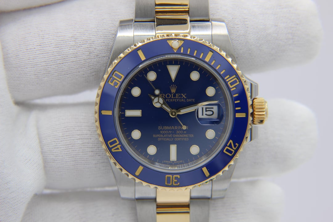 | Rolex Submariner 116613LB 18K Yellow TwoTone Flat Blue Dial Men's Watch 40mm empiretimenyc (3178) |