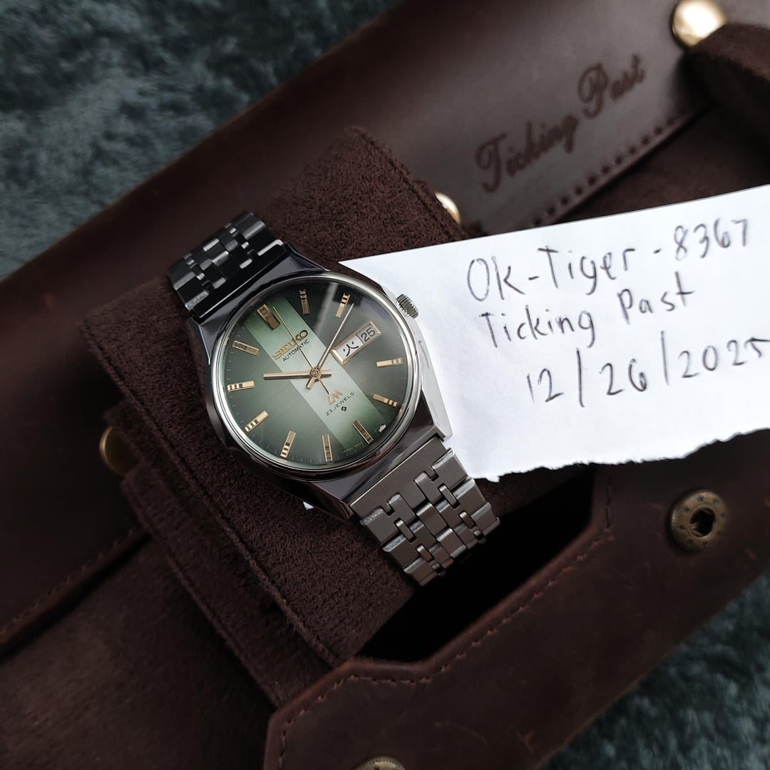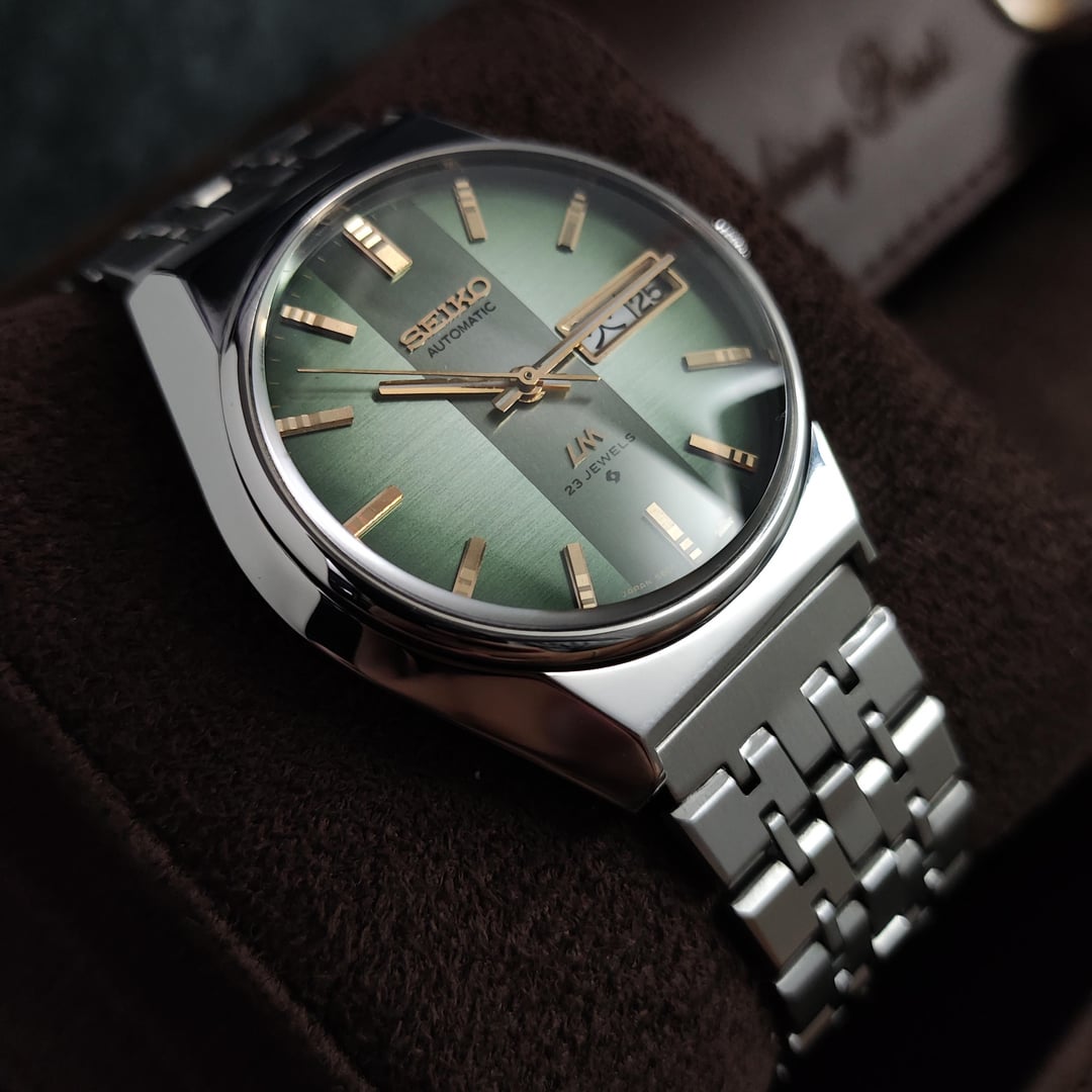 Up for sale is a Seiko 1975 Lord Matic (LM) 5606-8110 - BMBY: November, 1975 - Ref: 5606-8110 - Case Size: 36mm w/o Crown - Lug to Lug: 41.5mm - Bracelet: Up to 7.8 inch wrist (clasp extender included) - Movement: Automatic - Kanji/English - Date of serviced: November 6, 2025 (1 month movement warranty upon watch arrival) - Domed Sapphire Glass - All Original Except the Glass - The dial changes its color depending on the angle and lighting; it also has a different texture on the center and sides. - Professionally Polished - Date of serviced: November 6, 2025 (1 month movement warranty upon watch arrival) - Working quickset - With Manual Winding - Hacking 💰 Price: $225 (Shipping Included) 🌍 Accepting Paypal F&F/G&S(+4.4%) or Wise 📦 Inclusions: - Watch - Presentation Box 📍 Location: Philippines 🇵🇭