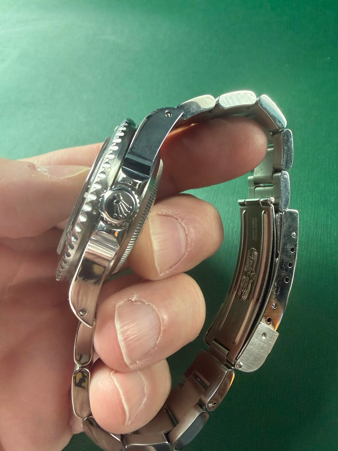 Catch and release for me. Watch only. Case: Excellent condition 40MM case with thick lugs. Dial: Excellent dial with matching hands. No nicks or flea bites on the crystal Luminova shines bright Bracelet: Original bracelet. No stretch. 10 links fit up to 8” fully extended. Diving extension included Service history: No service history. Runs about 3-4 sec fast a day. All parts original and luminova shines bright. P serial so 2000-2001 Offered at $7,090 FIRM shipped conus FedEx 2 day fully insured to your local FedEx location. I will gladly hop on a FaceTime call, exchange info, communicate via text or phone and over communicate with the buyer at every step of the way. This is the cheapest example on the market, looking at ebay, C24 or watch charts.
