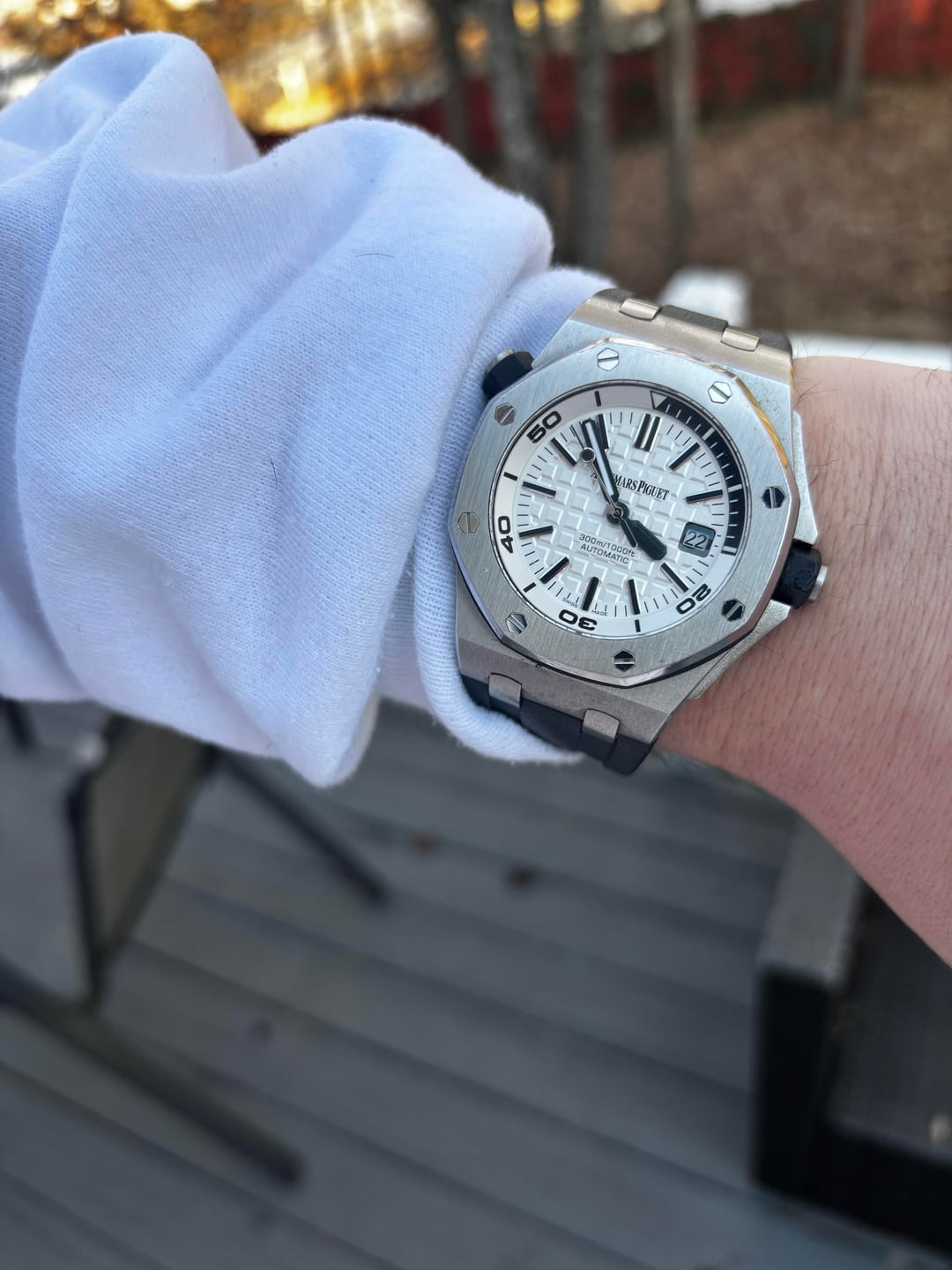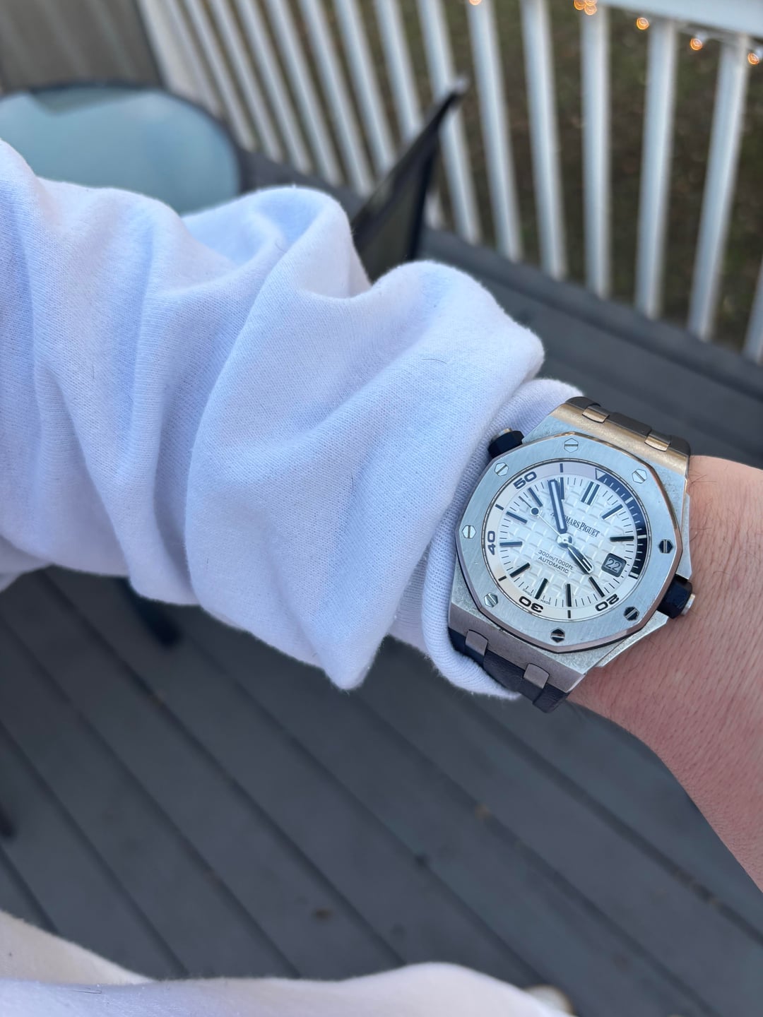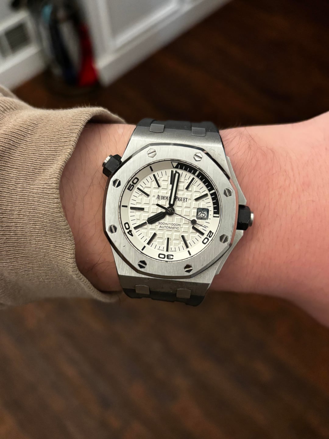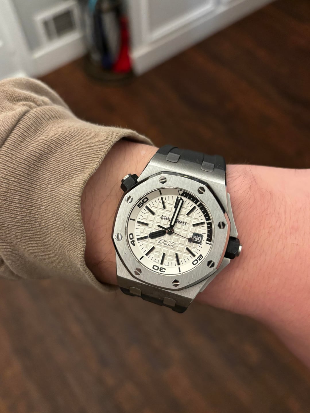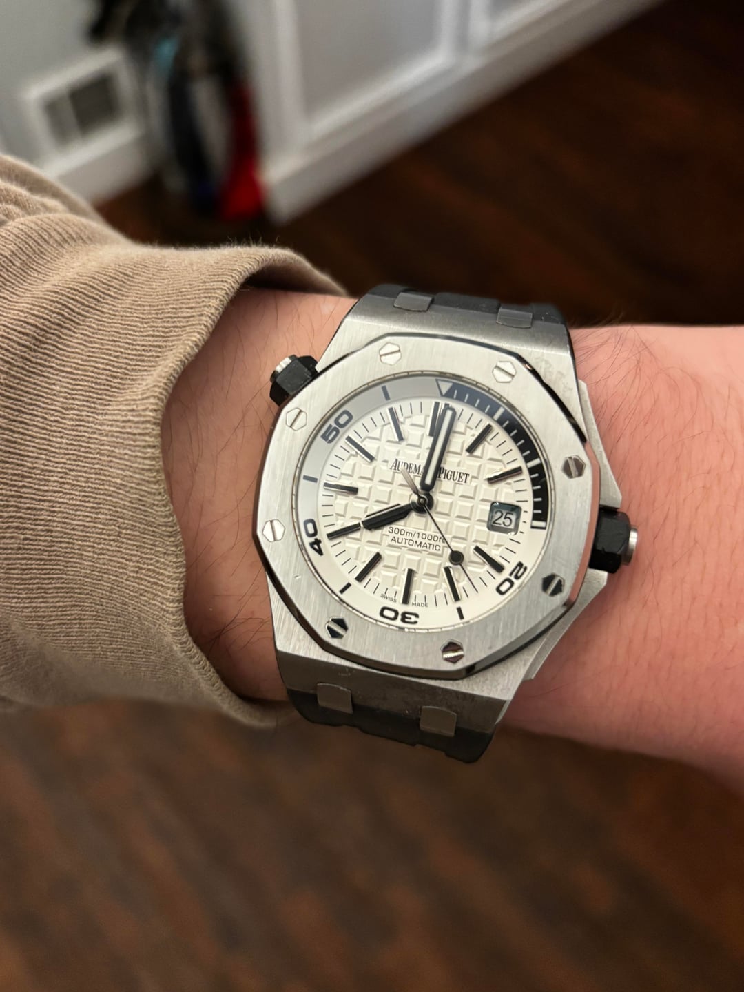 Hey everyone, selling this Audemars Piguet Offshore, white dial for $15,850. I’d put the overall condition at very good, as the very few marks take away from “excellent”. This is watch only. PM if interested! Accepting all payment methods including crypto, Zelle, Venmo and shipping anywhere.