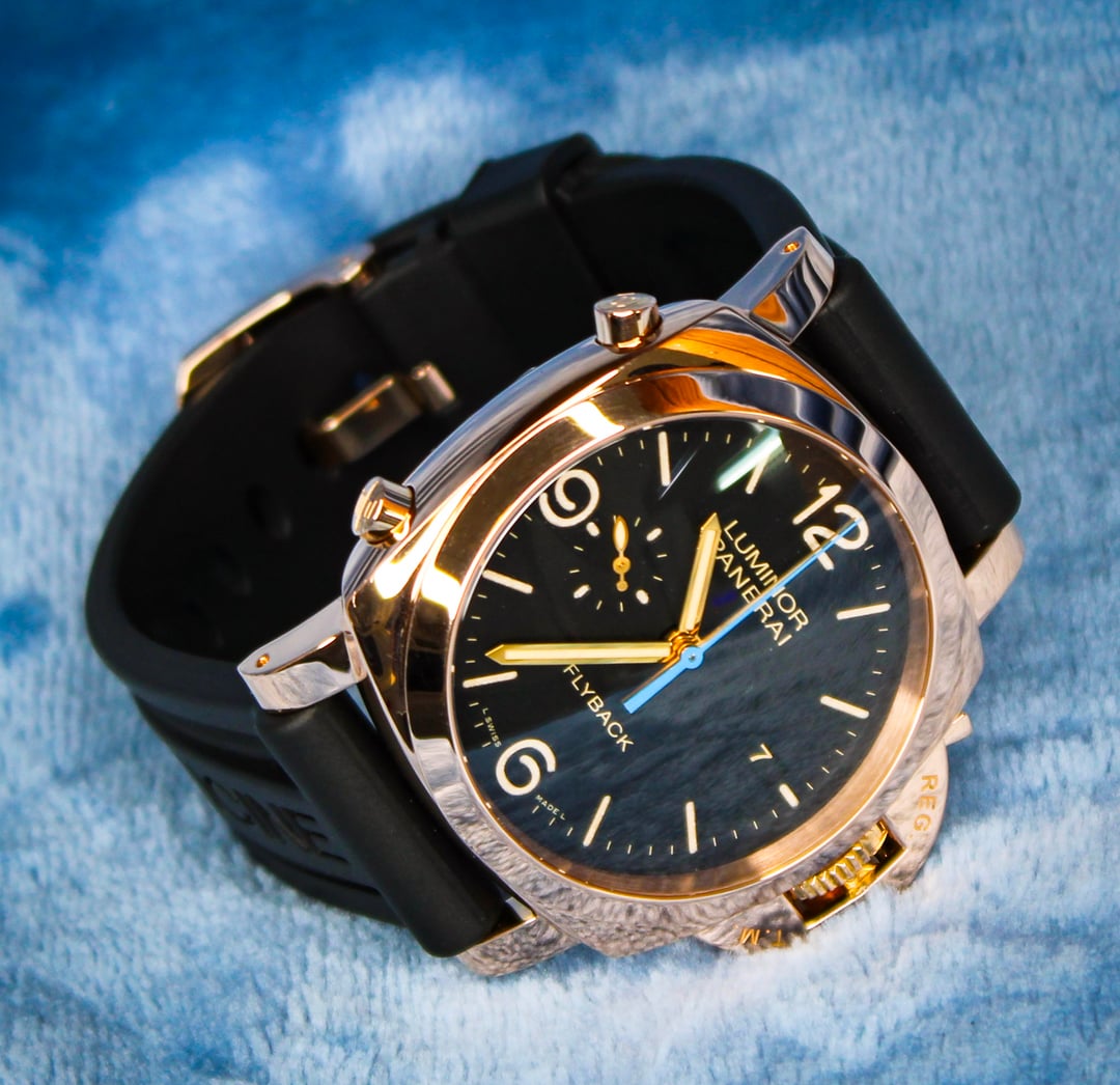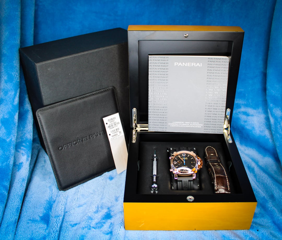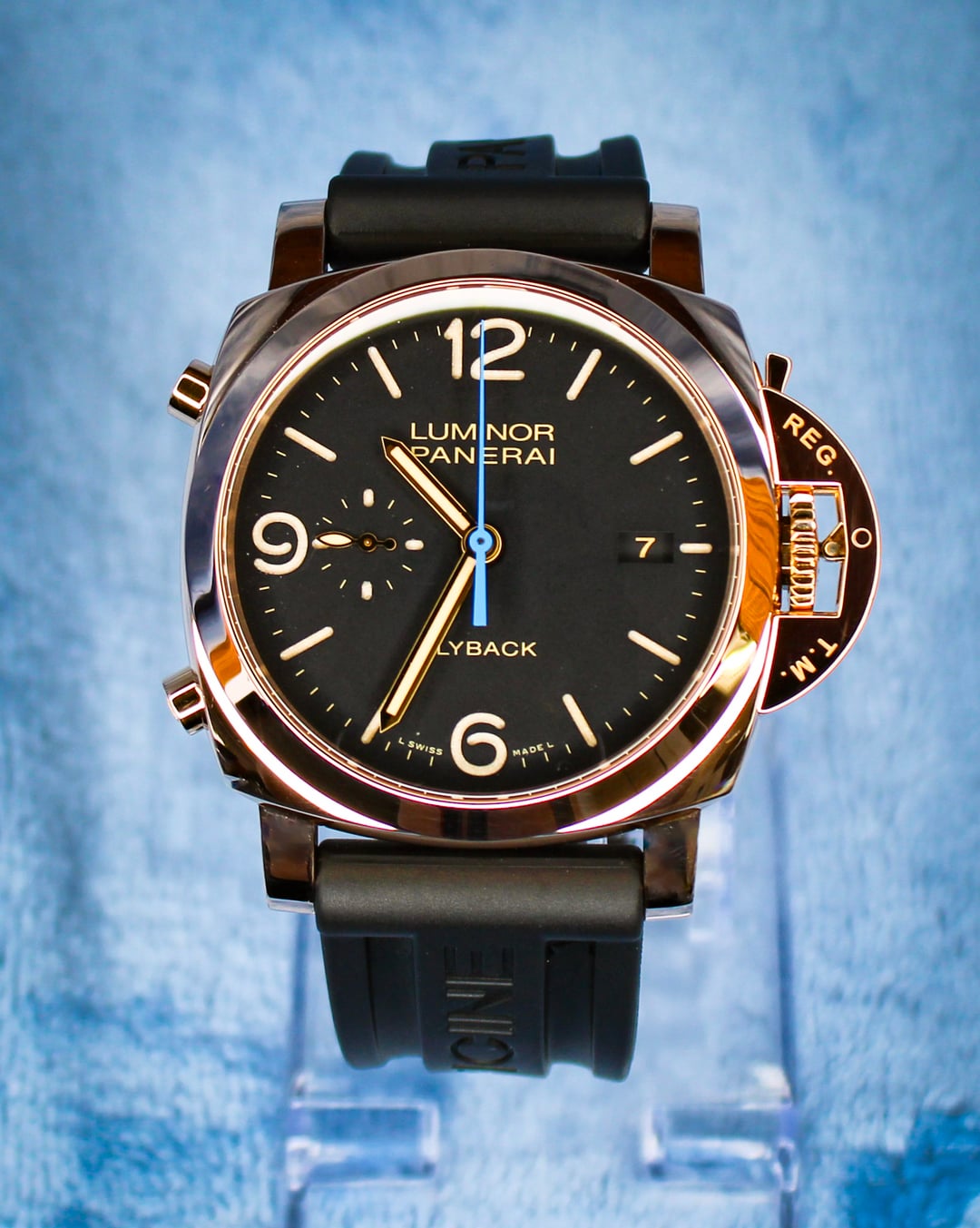 Panerai 1950 3 Days Chrono Flyback Luminor PAM00525 Black Dial This red gold Pam brings a lot of attention to the wrist. Extremely elegant and classy look. It has a black sandwich dial with blue/gold-tone hands and Arabic numeral hour markers that complement the case very nicely. Watch is in excellent condition with very minor marks on the case from normal wear. Please refer to pictures taken with a high-res macro lens for accuracy. Includes Double Box, warranty booklet, manual, papers, and tools. Happy to answer questions. I’m very customer service focused and strive for 100% positive transactions each and every time. I ship fully insured overnight to the FedEx location nearest your address with hold for pickup. I am also open to meeting in person. Imgur link: [https://imgur.com/a/panerai-1950-3-days-chrono-flyback-luminor-pam00525-gJB1AD4](https://imgur.com/a/panerai-1950-3-days-chrono-flyback-luminor-pam00525-gJB1AD4) Price: $15,500 u/IslandTimeLuxury