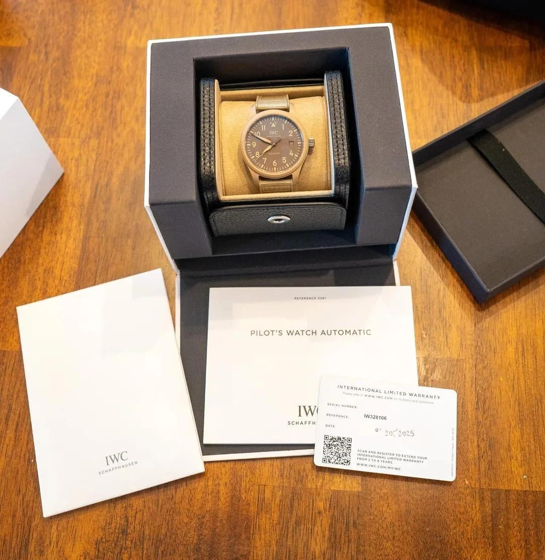 [TIMESTAMP](https://i.imgur.com/76HF4sK.jpeg) # IWC Pilot’s Watch Top Gun Mojave Desert IW328106 CHEAPEST IN THE WORLD. This watch is so much cooler in person. I've had nothing but complement's since I picked this up. Comes as a full set, card is dated 6/25 watch shows no signs of wear. I do take trades, no microbrands please. $6,700 plus shipping. Who am I ? I'm a watch nerd that buys and sells a lot of watches. You can find me on Instagram [HERE](https://www.instagram.com/ryansrolexes/) and on Facebook [HERE](https://www.facebook.com/profile.php?id=61576924864004). I'm happy to facetime, send you more photos and videos. I'm based in North Texas and have a private meeting area in Frisco if you'd like to see this in person.