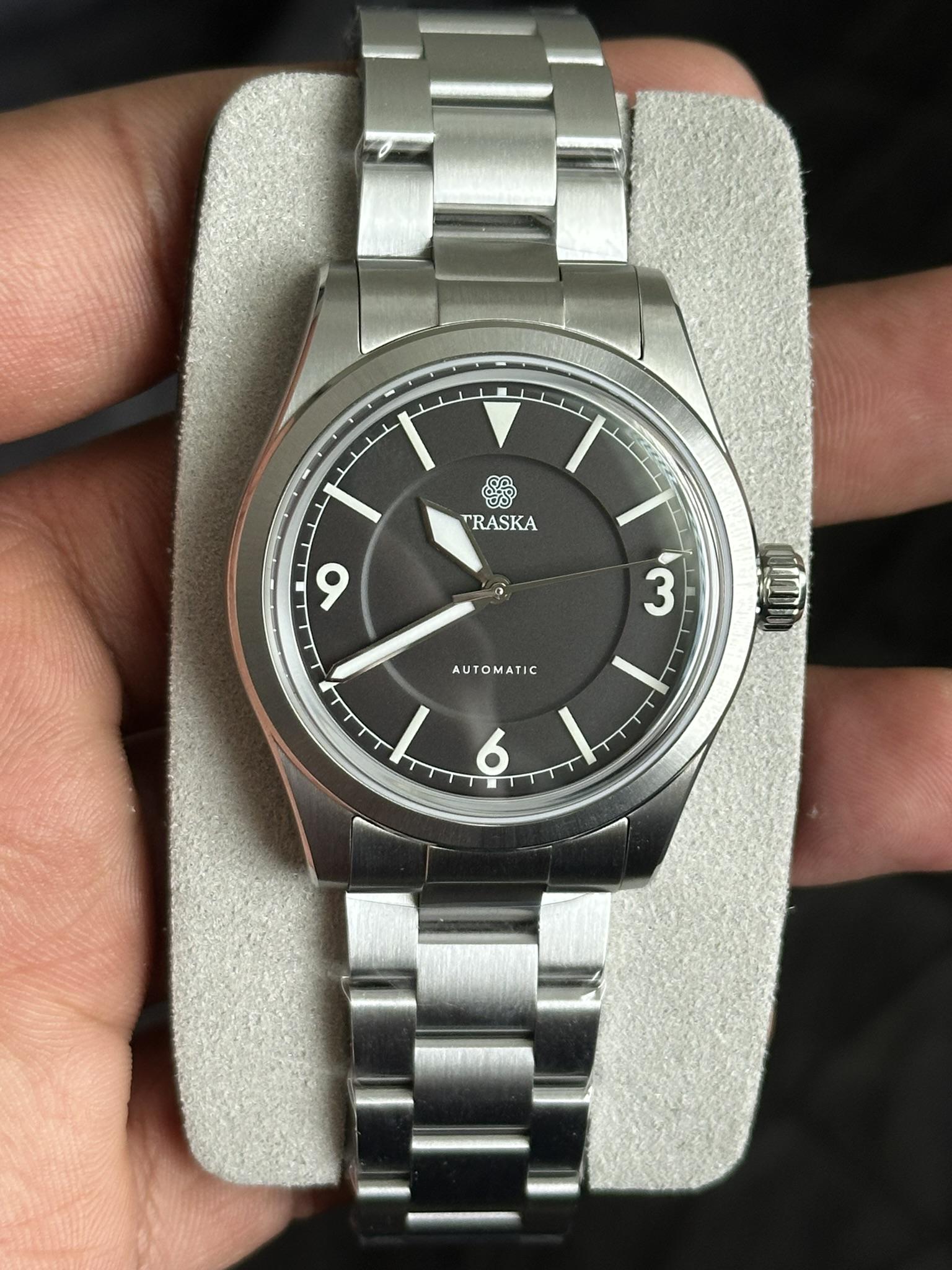 Up for sale today is my Traska Summiteer 38 with a black dial. This is a catch and release for me. I purchased this 2 weeks ago and wore it for a few days. Watch is basically new with no scratches or dents. Bracelet is unsized and unused. I just didn't bond with the watch, so I'm selling it. No trades please unless it's a Nodus sector sport ii void More info: [https://www.traskawatch.com/products/summiteer-38-charcoal-black](https://www.traskawatch.com/products/summiteer-38-charcoal-black) Timestamp and Album: [https://imgur.com/a/traska-summiteer-38-irK2oKQ](https://imgur.com/a/traska-summiteer-38-irK2oKQ) Price: 650 including insured shipping within the US Payment: Paypal F&F Shipping: Insured USPS/UPS/FEDEX within CONUS I am open to FaceTime calls to show the watch