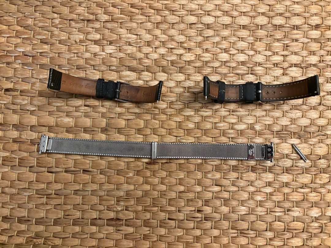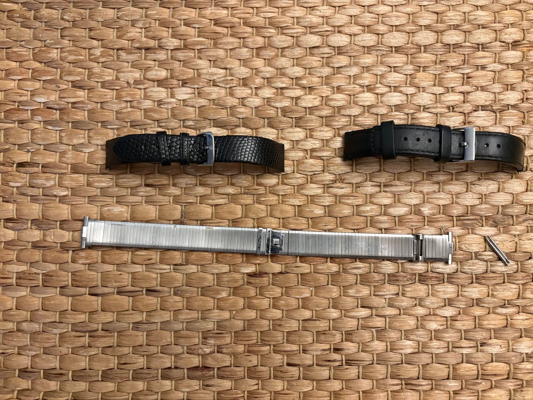 Offloading two 18mm leather straps and a bracelet. All are well used but have a lot of life left. **(Top Left)**: Crocodile/alligator style black **Speidel** leather band. 18mm with quick release mechanism. Retails for about $40. **(Top Right)**: **Barton** black leather band. 18mm with quick release mechanism. Retails for about $40. **(Center)**: Forstner Komfit Military Type "Thin as a Dime" bracelet in brushed finish. Description states it is designed to fit between 16-20mm. Will include two 18mm spring bars as well. See attached link for more details. Retails for about $135. [(Link)](https://forstnerbands.com/products/forstner-komfit-military-type?variant=40793497862336) **Price: $50** \+ shipping for the whole bundle OBO Feel free to drop a comment and DM if interested. Do let me know if you would like additional pictures. Prefer Zelle/Cashapp/Venmo and shipping only within US. Happy to share references from this group if required. Thanks!