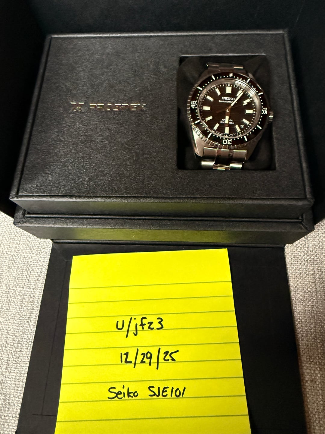 Hello r/Watchexchange, I’m selling my mint condition Seiko SJE101 Marinemaster. It’s a beautiful watch, but I got the call for a Rolex Explorer (grail) two weeks ago, and I need to sell to help fund that purchase. The watch was purchased from Exquisite Timepieces, keeps great time (+2 seconds/day) and comes with the full kit. Warranty card dated July, 2025. Pics speak a thousand words, so please scroll through. Feel free to reach out with any questions. Asking **$1750** net to me, shipped & insured CONUS. Sorry, no trades.