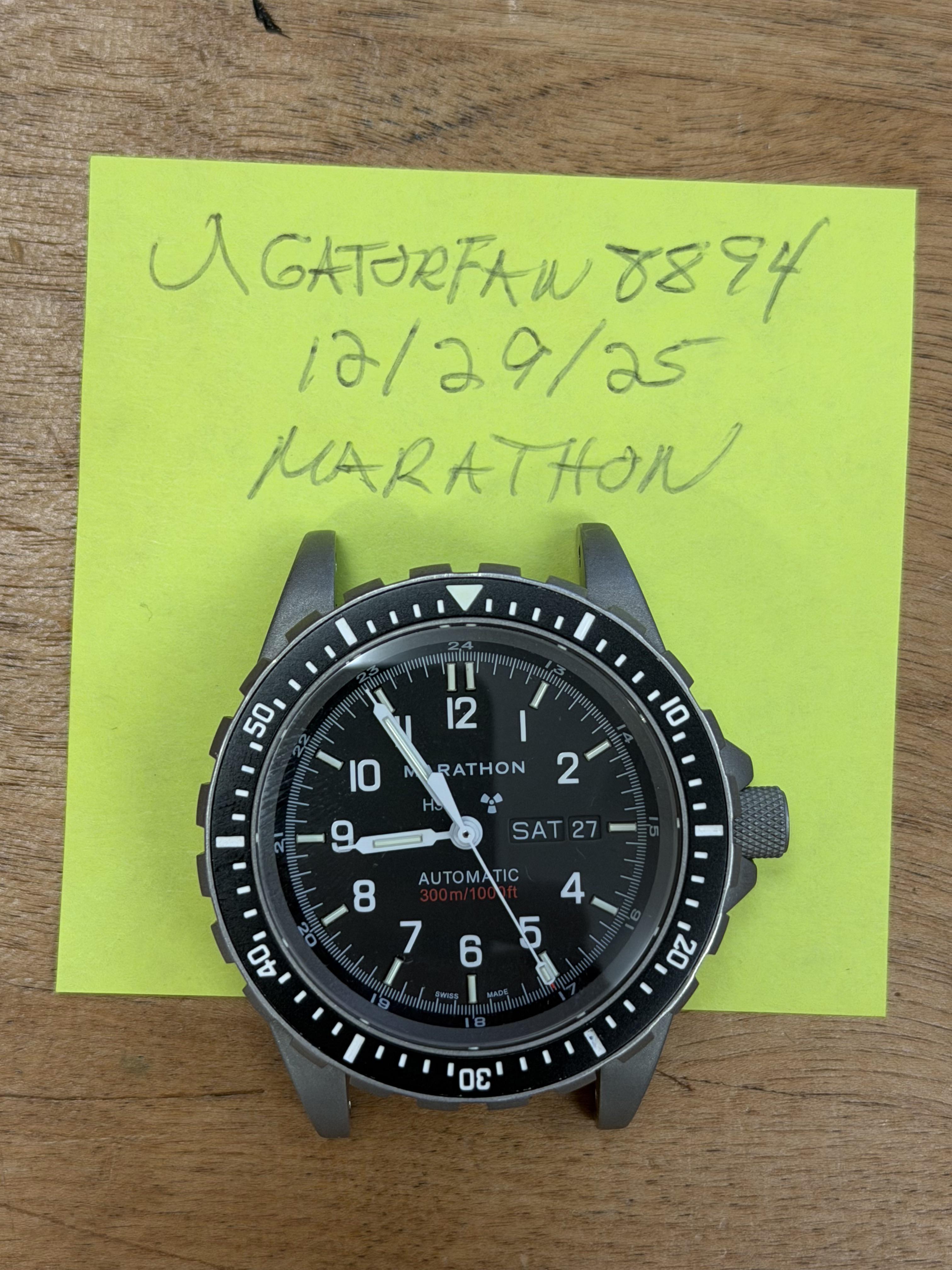 Picture Link https://imgur.com/a/maLQoBv 2022 Marathon JDD Automatic full kit. I just purchased this to replace my JSAR but changed my mind. Just can’t make the change. The watch has a bead blasted case, domed sapphire crystal and black day/date dial. All done by Wilson Watch works. Has an unworn three-piece marathon rubber strap, and a worn orange marathon rubber strap. Inner and outer boxes and outer sleeve, etc. see photos. In great shape. Minor marks on sides of case. Runs great. Matte finish is really cool. $2475 new. Asking $1250 shipped CONUS OBRO. Message with questions. I have references. Happy to FaceTime. Zelle, PayPal, Venmo.