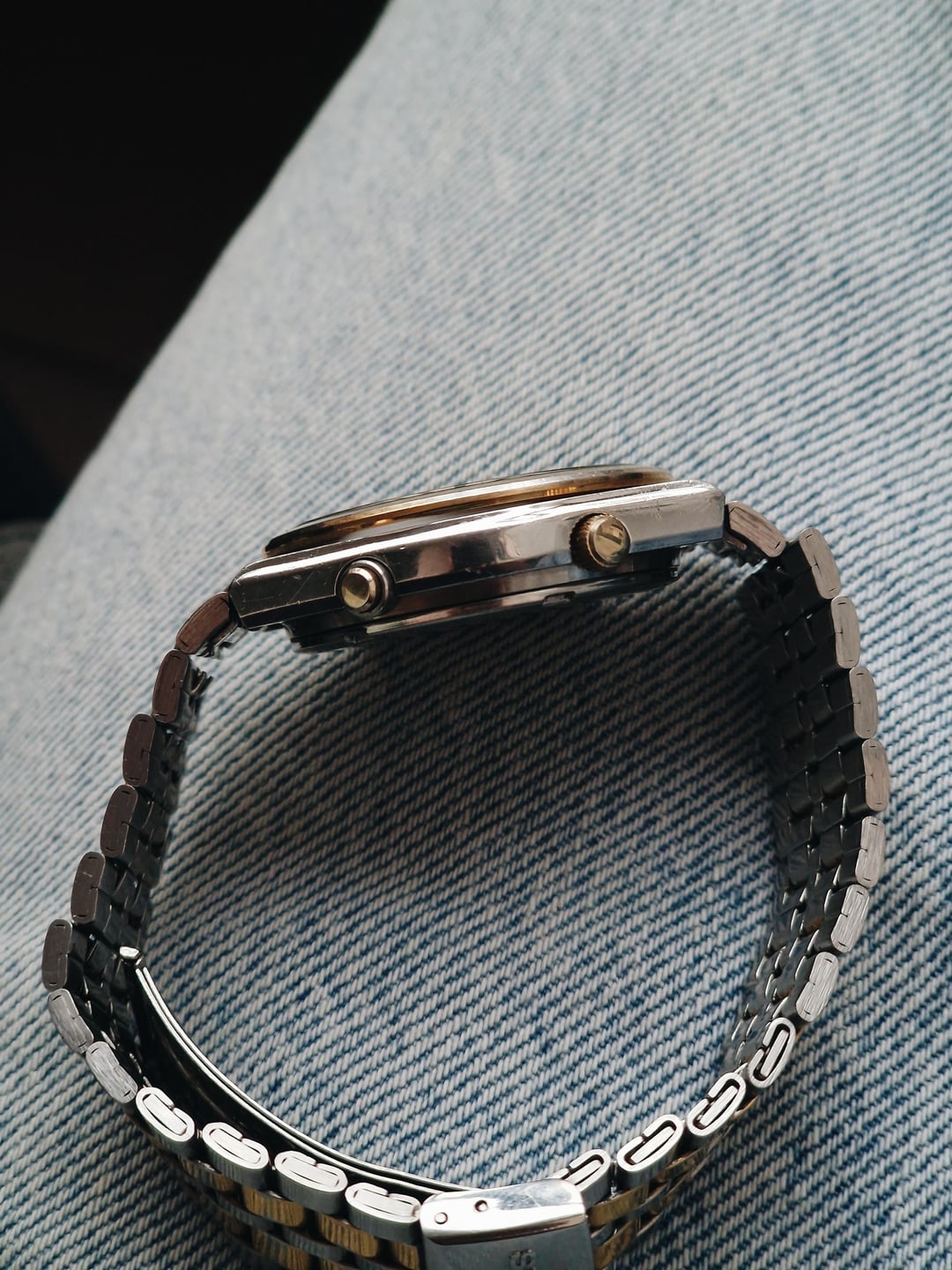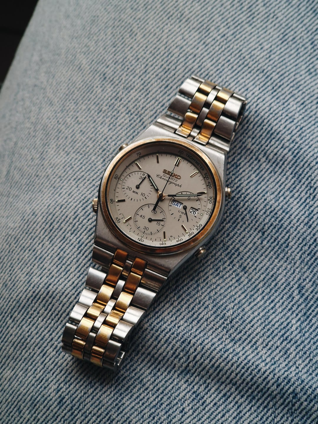 The 7A38-7280 is pure 80s Seiko flex – a two-tone, angular, Royal Oak-inspired chrono powered by one of the best quartz movements ever made. The caliber 7A38 was jewelled, fully serviceable, and massively over-engineered. The serial number dates it to January 1988, right in the sweet spot of the 7A era. It wears slim, sharp, and more refined than most people would expect from a Seiko. If you want that integrated bracelet look with real horology behind it, this is it. **Condition:** Good condition for its age. Some markings on the case and bracelet. The latter has started to lose some one the plating, which unfortunately is common with these. The mineral crystal looks very good. Please see the pictures for full condition and clarity. **Case Size:** 37.3 x 41.5mm stainless steel case with a thickness of 10.8mm. **Movement:** Seiko 7A38, quartz with 15 jewels. Known as the world’s first analog quartz chronograph with a day/date complication. Service history is unknown, but everything is working as it should. **Price:** Asking $315. Please add $20 for worldwide shipping. Payment methods include Wise, ACH transfer, Revolut, Bitcoin (On-Chain or Lightning), or PayPal G&S for buyers with solid references. Add +7.5% for currency conversion fees on the latter. Portugal has suspended all local post shipments to the US, but I can still ship with UPS ($100). Established seller with over 220 transactions – buy with confidence! Make sure to follow me on Instagram (@daily.worn) to check out the newest additions. [Pictures](https://imgur.com/a/Qyj13Wv) [Timestamp](https://imgur.com/a/MjisnUk)