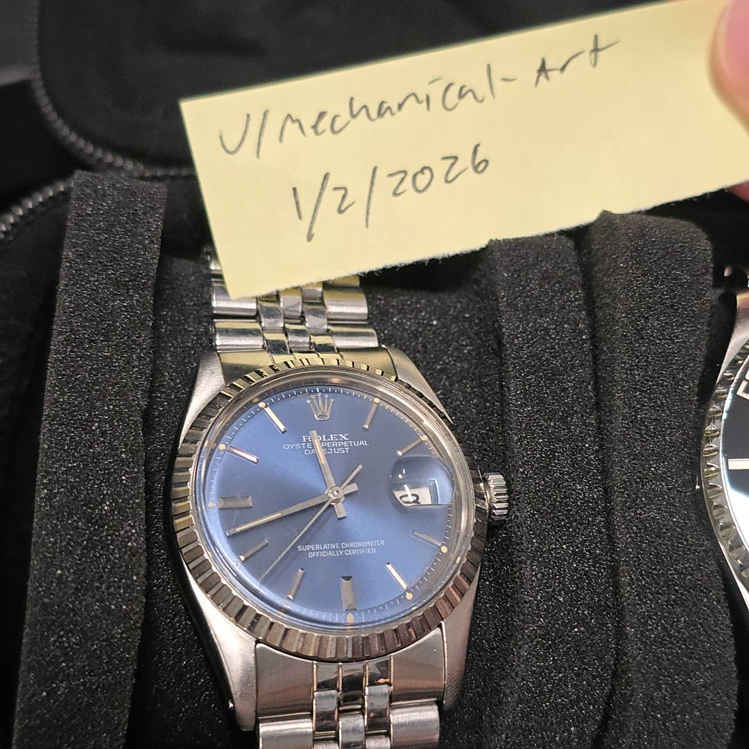 Up for sale here is a nice example of the famous Rolex Datejust, cased in 36mm of stainless steel and sporting the engine-turned bezel, a less flashy option than the fluted! Ref. 1603 The 1603 is powered by the automatic caliber 3035 movement, which showcases the introduction of the quickset date and hacking seconds hand! Comes with the Rolex box as shown, and the fully linked jubilee bracelet.  Asking price is $4,750. **All watches sold by us come with a 1 year warranty on movement, case, and bracelet functionality.** We have been trading luxury timepieces since 2017 and operate out of the southeast United States. Accepted forms of payment are wire transfer, trades for other watches, or crypto +2%. Turn your digital coins and memes to IRL assets! After payment has been received, we ship out promptly using Fedex Priority Overnight, fully covered by a private insurance company. Packages are sent to a Fedex Office or Ship Center to be held for pickup. Armored carrier or personal delivery will be arranged for pieces valued over $150k. More pictures or video available on request! Plenty of references available, so deal with confidence! We pride ourselves on customer service, communication, and will do what you need to make this a comfortable transaction. Most brands and models of luxury timepiece are accepted on trade. Rolex, Audemars Piguet, Patek Phillipe, Richard Mille, Hublot, Panerai, Zenith, Breitling, Vacheron Constantin, F/P. Journe, A. Lange & Sohne, etc. I can do cash either way or multi-watch trades for the right deal! Check out our other listings on mechanical-art . com