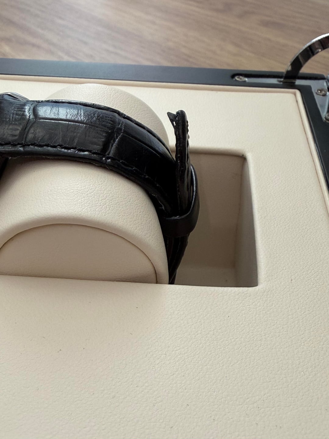 $225 shipped CONTUS Selling a Portsea Calendar Classic from Melbourne Watch Company; their take on the “Deck Watch” style. Very good used condition, no scratches on the sapphire crystal or noticeable ones on the case. There is some peeling on the very end of the leather band, see pic. Includes original box and manual! Powered by the Miyota 9122 'triple calendar' automatic movement with date, day and month functions. This model comes with a multi-layer ceramic dial that really accentuates the blued hands! Case 48mm L:L, 40mm case diameter, 13mm thick, 20mm lug width. https://www.melbournewatch.com.au/products/portsea-calendar-classic & https://longislandwatch.com/melbourne-automatic-calendar-watch-ps.40.a.cal.01/ Happy to FaceTime to answer any questions!