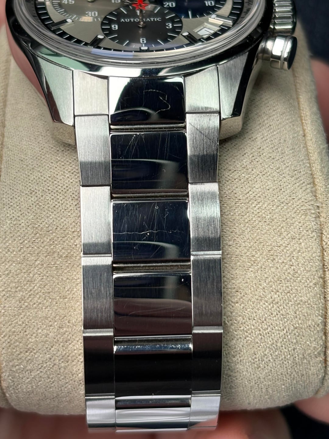 For sale today I have a classic from one of the best brands out there, Zenith. This El Primero Chronomaster 1969 features a super comfortable 38mm case with an amazing dial. The star of the show is the movement featured by a sapphire case back. This watch functions perfectly. Included is watch, outer/inner box, leather card holder, and warranty card dated 2012. There is some wear on the case sides and bracelet so a polish may be needed. Crystal is clear! $5600 plus shipping conus.