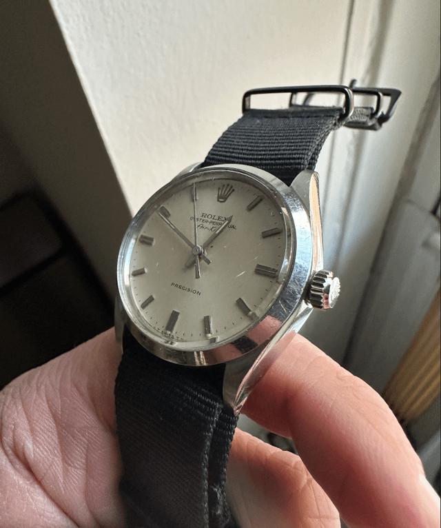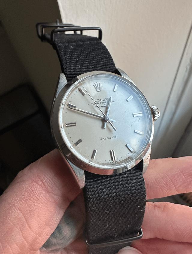 1969 Rolex Air-King unpolished/original Ref: 5500 Silver Dial For Sale: $2,500 with additional bands (seen in photos) Have had this watch for 5 years and it just doesnt get worn much anymore. If you have any questions please reach out! happy to provide more photos if you need them. Also willing to sell the Wolf Watch winder in the deal for an additional $250 if you are local and we can meet up to do an exchange. If shipping, add another $50. Am located in NYC and can meet for a sale. Will Ship within the US fully insured FedEx. Thank for looking!
