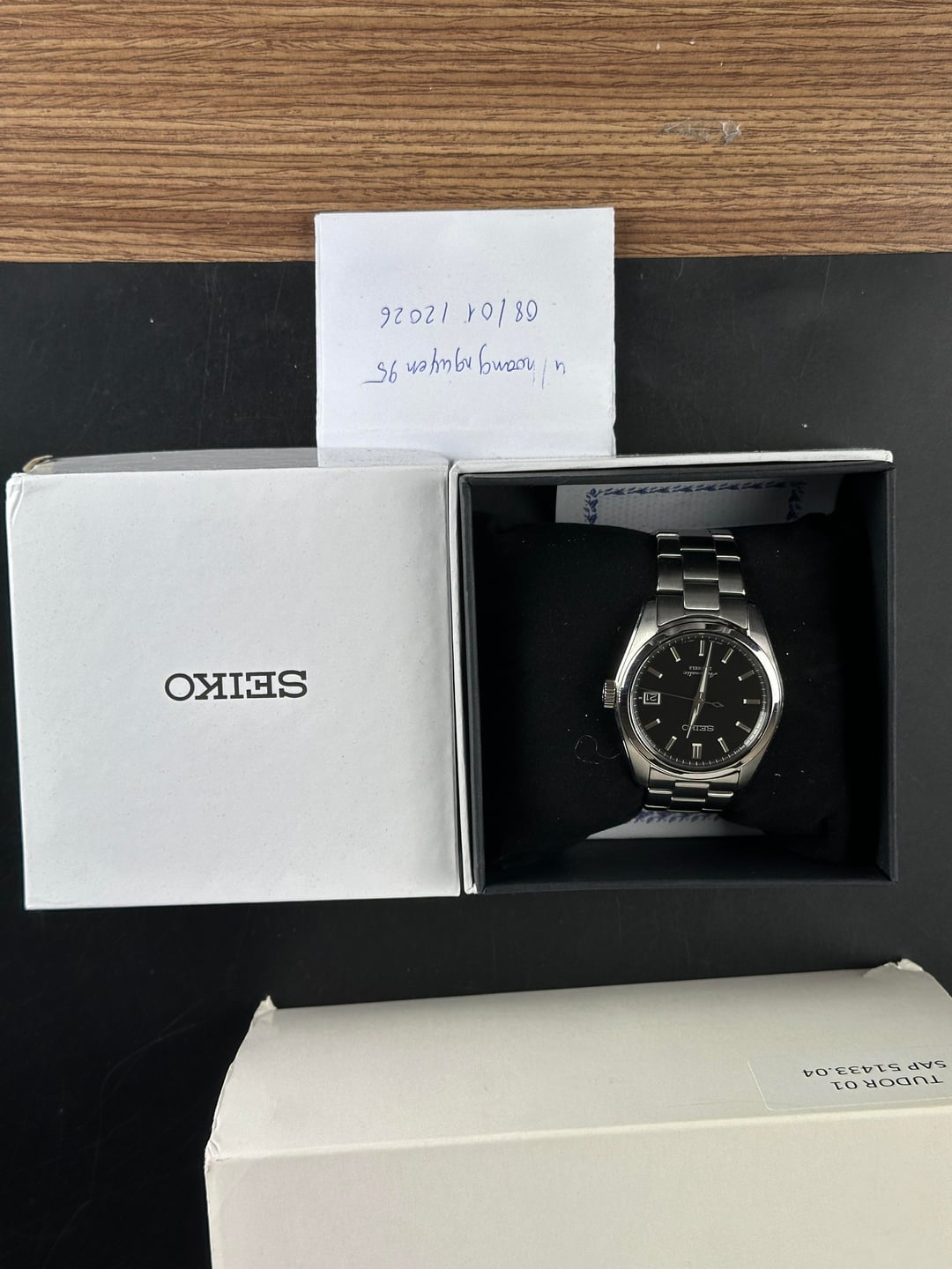 Up for sale is the Seiko Sarb033 aka “Baby Grand Seiko” in excellent condition. Images: https://drive.google.com/drive/folders/1FRqSN6qp1ExrXbqXpwQaYu466l5GCi83 Video: https://drive.google.com/file/d/1iW8AbB9w80d4VW1ccvQKywK9X2i_gcs5/view?usp=drivesdk Timestamp: https://drive.google.com/file/d/1KtO0km3dGwfyQIXZVr64-yW4vbmstPBl/view?usp=drivesdk The Seiko SARB033 (black dial) was originally released in 2008, alongside siblings, 035 (cream dial), 037 (salmon dial) and 038 (Gold pvd). It was immediately met with rave reviews due to its superb design and an excellent value proposition. It was discontinued in 2018, and since then the price has gone up due to its collectible status. Introduced in 2007, the SARB033 features a 38mm stainless steel case with a 44.5mm lug-to-lug length, thickness of 11.5mm and 20mm lug width. Inside, the watch houses the reliable 6R15 automatic movement, delivering solid performance. It’s water-resistant up to 100 meters, protected by a Sapphire crystal and a display case back. The dial sports a black finish, complemented by refined dauphine hands and applied index markers. This watch is in great condition, showing little scratches. Dial and crystal are clean, however hands can see mark at the tail of the minute hand. It has been recently serviced and is running accurately. The original bracelet remains firm and fits wrists up to 18.5cm - 19cm (7.2 - 7.5 inches). It comes with Seiko box, booklet and card Price: $625 + $60 flat shipping (via DHL/UPS express which includes duty imports/tariffs fee). Payment via PayPal F&F or G&S (+4.6% fee covered by the buyer). Not accepting trades. Feel free to message me with any questions or if you're interested. Have a great day!