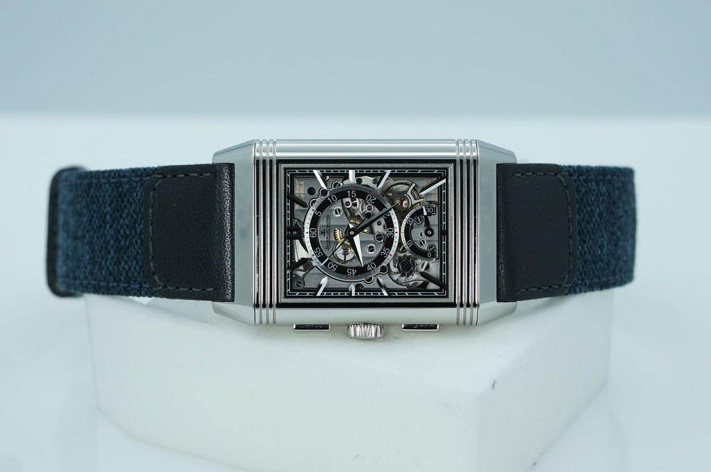 FSOT: Jaeger-LeCoultre REVERSO CHRONOGRAPH SKELETON BLUE DIAL 2024 WARRANTY FULL SET