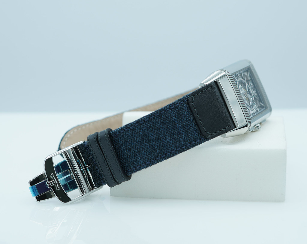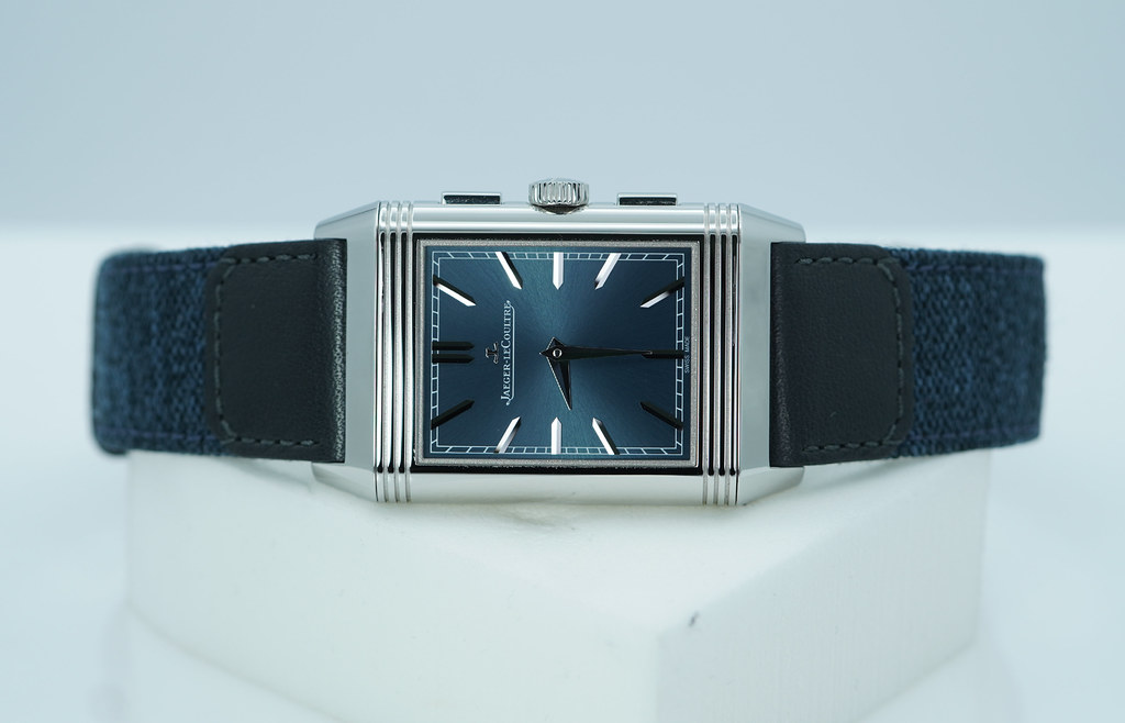 Hi, Selling An Excellent, Unpolished Condition & Very Beautiful 2024 Jaeger LeCoultre Q389848 Reverso Tribute Chronograph. Stainless Steel Case with Skeleton Dial & Blue Dial . It's on JLC Black & Blue Leather/Canvas Fagliano Strap with Double Folding Buckle. Manual Winding Calibre 860 with 52 Hours Power Reserve. Purchased from Jlc USA Authorized Dealer in 05.2024. Watch Running Perfect with Non Issues. Under 8 Years Factory Warranty. Full Set with Extra JLC Black Fagliano Balck Strap & Blue Alligator Leather Strap.