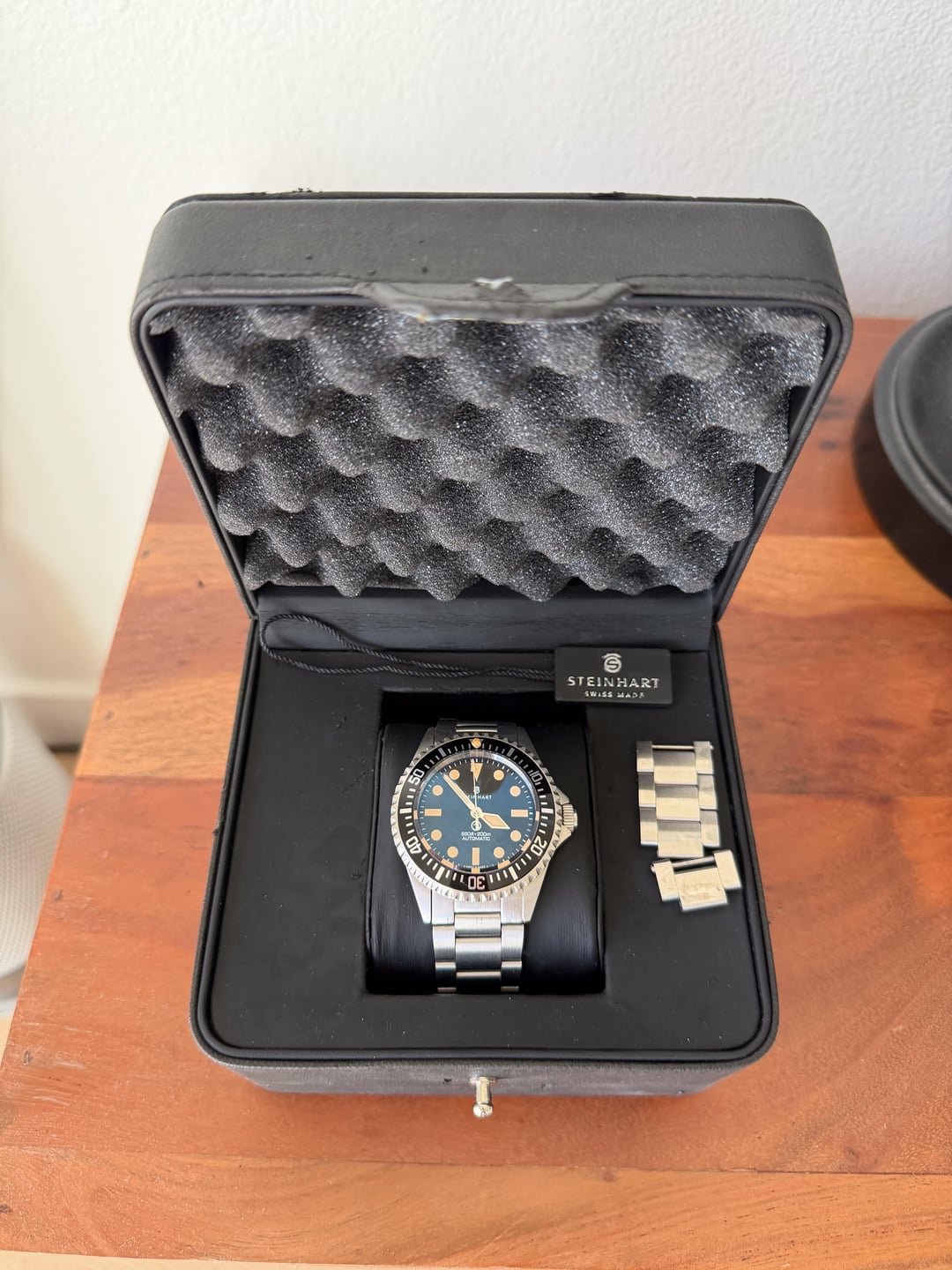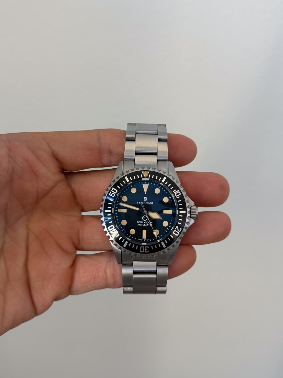 Selling Steinhart Ocean Vintage One Military OVM Mark 1 42mm dive watch. V1 / MK1 dial with less text. Minor scratches from use and the lume pip on the bezel insert was knocked off-center. Comes with box and extra links. $350 Shipped CONUS or best offer.