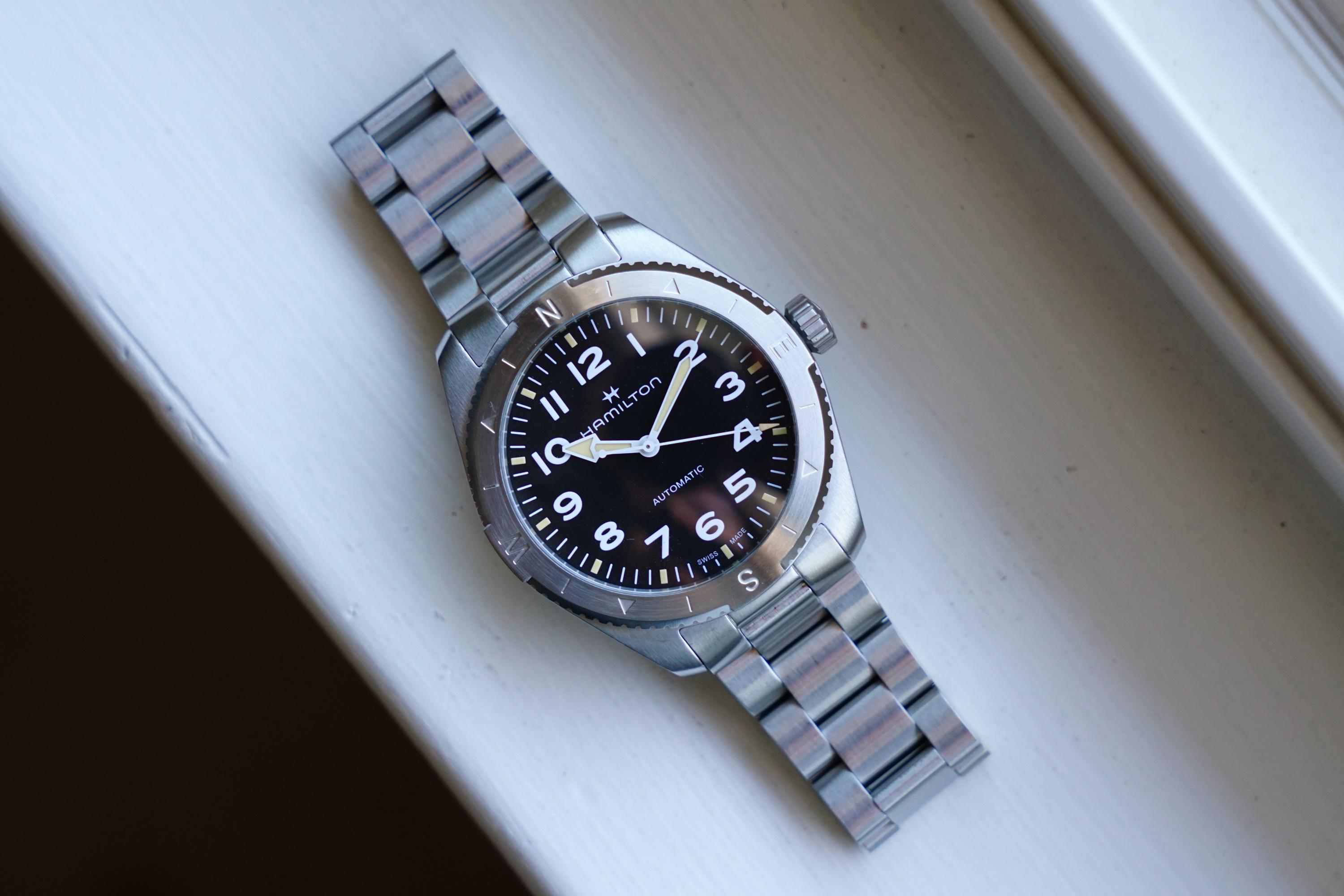 Selling a Hamilton Khaki Field Expedition Auto 41mm (H70315130) in excellent used condition. The watch comes with the metal bracelet from Hamilton, with all the extra links included. There are a few light scuffs and scratches on the bezel and bracelet, but the case and sapphire crystal are in excellent condition. The H-10 movement is running great and keeping accurate time well within specs. Asking for $600 with shipping to CONUS included. Paypal F&F, venmo, or Zelle for payment. NO TRADES. Pics: https://imgur.com/a/EmuYP4L Timestamp: https://imgur.com/a/6Y0LC91 More info: https://www.hamiltonwatch.com/en-us/h70225130-khaki-field-expedition-auto.html