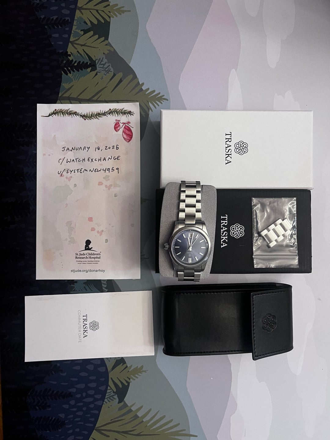 Hello r/Watchexchange, For sale is this beautiful Traska Commuter 36 in a unique Aegian Blue FULL KIT EXCELLENT CONDITION. Traska has easily become one of my top affordable microbrands because of the sheer quality for value that you can feel as soon as you pick it up and because of the fact of how most Traskas virtually disappear on your wrist as far as feeling. That comfortable feeling is due to the fully articulating bracelet. Another reason it has become one of my top brands is because the headquarters are located in Jacksonville, Fl only a short drive from my town. This watch is the perfect size, at 36mm it is an instant classic. Comes with a Miyota 9 series beating at a nice 28,800 bph and is super reliable. Another main attraction to Traska is that their hardening process of their 316L surgical steel is truly a work of art. It is super hard to scratch one of these watches. The double domed boxed sapphire crystal is another feature that captures the eye. This really is the perfect go anywhere do anything watch. From the office to any adventure. This particular watch is in excellent condition with no issues, comes full Kit. Price: $525+ $10 priority shipping anywhere in the US Shipping: Buyer pays $10 for flat rate USPS priority shipping anywhere in the US, insurance and other options are responsibility of buyer. Shipping from Central FL and watches are always packed with love and care. Payments accepted: Zelle is highly preferred. (PayPal FF, PayPal GS + 3.5%, Venmo, Apple Pay are reserved for forum members with enough registered transactions at my discretion) Please comment before sending a private message (PM). Happy to provide additional photos or a video call for serious buyers. Check my for profile for transaction history and other watches for sale. Thank you for your consideration, I look forward to hearing from you. U/systemnew4959
