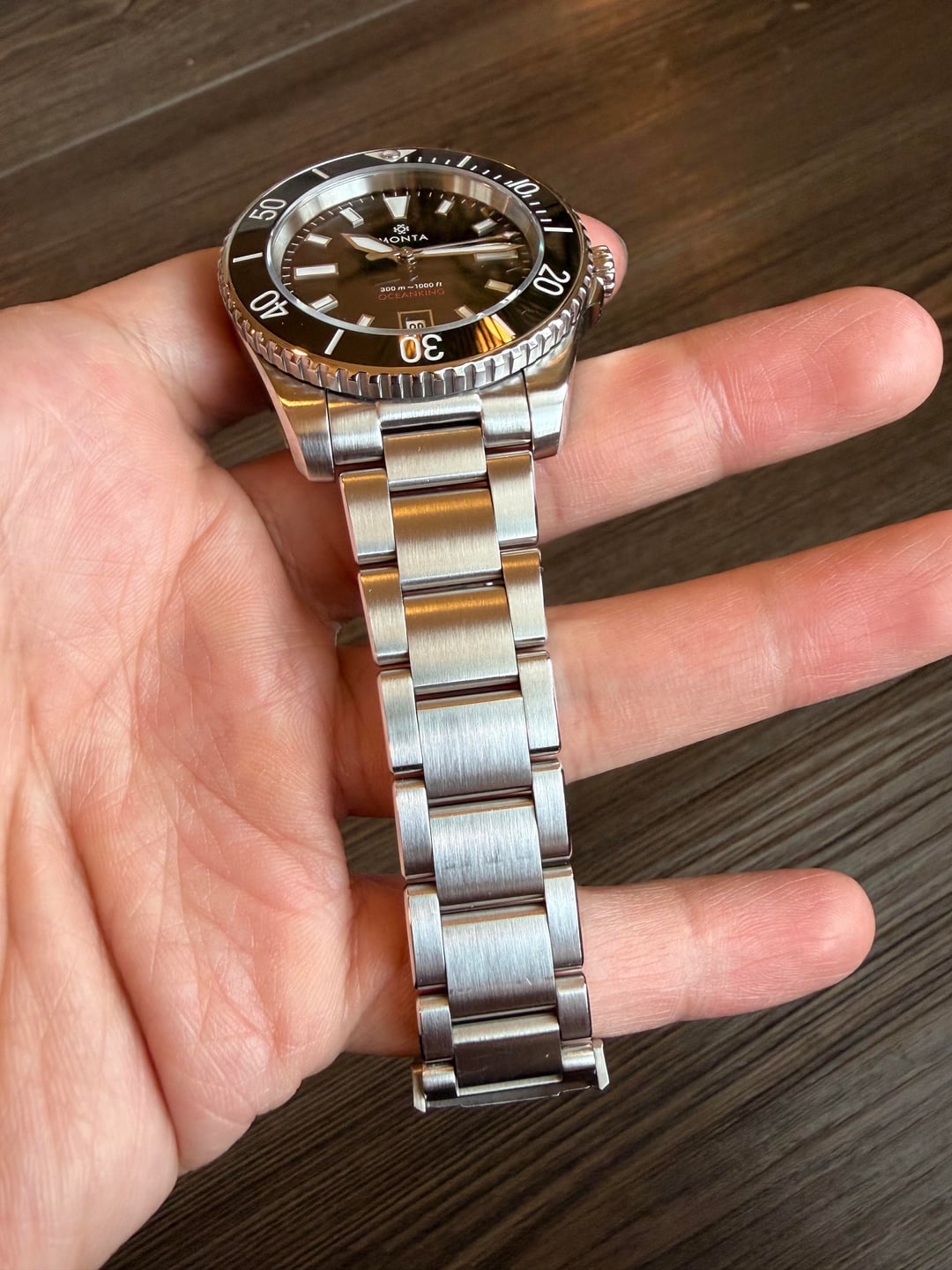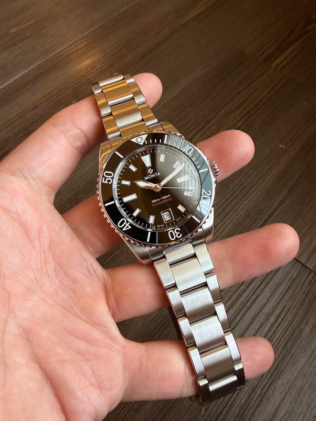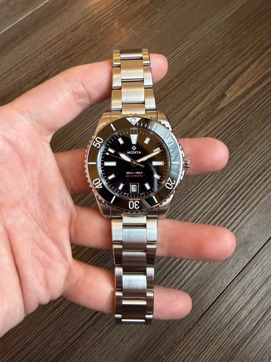 Selling this beautiful Monta Oceanking. I am the original owner, bought the watch from Monta in 2023. Watch is in great condition. Crystal and bezel are near mint, the case is in great condition (have a few hairline scuff on the side), but otherwise no dents. Bracelet is in great condition. All links included. Full package with all the included links, warranty card, and original box. Selling for $1500+shipping Not interested in trades right now CONUS. Will do Zelle, Venmo. Thank you! Images: https://imgur.com/a/monta-oceanking-UYn6htz Time stamp: https://imgur.com/a/monta-oceanking-timestamp-TJpEior