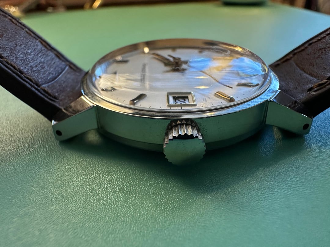 Up for sale is a beautiful Certina Bristol 235 from the mid-1970s. This piece features a classic sunburst silver dial with applied markers and a date window at 3 o'clock. It is powered by the robust, in-house Certina 25-661M manual wind movement, known for its longevity and precision. *Condition & Service History* • Movement: Recently serviced. It is the upgraded "M" variant (featuring a 3-spoke balance wheel). • Performance: Excellent. Timegrapher results show it running at +21s/d with a strong 269° amplitude and a near-perfect 0.1ms beat error. • Case: Stainless steel in great vintage condition with sharp lugs. Minimal surface wear consistent with age. • Crystal: Domed acrylic crystal, clear and free of major scratches. • Strap: Paired with a high-quality, padded dark brown leather strap that complements the vintage aesthetic perfectly. *Specifications* • Case Size: 35mm (excluding crown) • Lug-to-Lug: ~41mm • Lug Width: 18mm • Movement: Manual wind Certina 25-661M (17 Jewels, 19,800 BPH) • Power Reserve: ~46-48 hours • Features: Sweep seconds, semi-quickset date (set by moving hands between 23:00 and 24:00). *Price: $199 OBO* - includes shipping in CONUS Accepted: Venmo or PayPal Friends & Family (F&F). PayPal G&S: Accepted only if you have at least five (5) confirmed transactions on r/WatchExchange, and you must add an additional 5% to cover the fee.