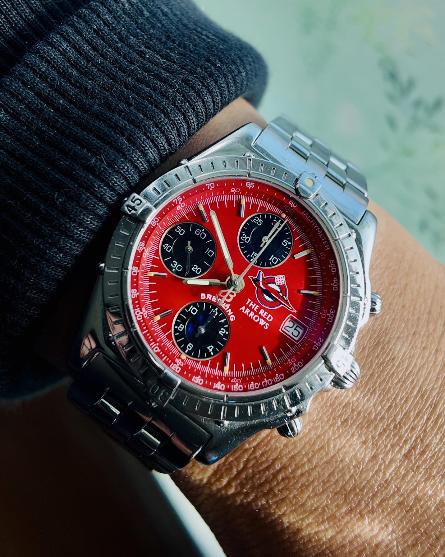 Breitling Chronomat The Red Arrows A13050.1 Limited Edition The Chronomat line is both classic and iconic. Here we have it in a vibrant “The Red Ones” special edition which is a tribute to a 30 year partnership with the Royal Air Force. The Valjoux ETA 7750 automatic movement was serviced and pressure tested in October of 2025 and running like an ace. Bracelet appears fully linked but pm or email if your wrist is 7.75 and bigger to double check Timegrapher and videos: https://drive.google.com/drive/folders/1KPBmi3HJrfrfHNrIqxIvmtukqgg_d7ST Timestamp: https://imgur.com/a/HKJ3pqm * cool aftermarket pelican style case and independent service papers from October 2025. It was pressure tested but we do not guarantee that it is waterproof * video is the best way to view the watch if in-person test drive is not available. Due to the different characteristic of the cameras and gadgets used, the color of the watch you purchase may not be the same as shown on this website or on our Instagram. * will consider trades that make sense but please consider time, shipping, and trade value—not market. * local special: can possibly accommodate at ButterScotch in Downtown Long Beach by appointment * All sales final unless the watch is misrepresented or lost in transit (always fully insured) * Link to [feedback here](https://www.reddit.com/r/WatchExchangeFeedback/search?q=soycowboy&restrict_sr=1&sort=new) & [watchcharts here](https://watchcharts.com/repcheck/user/soycowboy?source=reddit&type=feedback) * Asking a *negotiable* **$2340** via bank wire, Zelle, venmo, or possibly Appleay with super strong references or if I know you. Price includes fully insured Fedex shipping in the USA— hand delivery in Long Beach with drinks or coffee on me ;). Cheers, Stephen