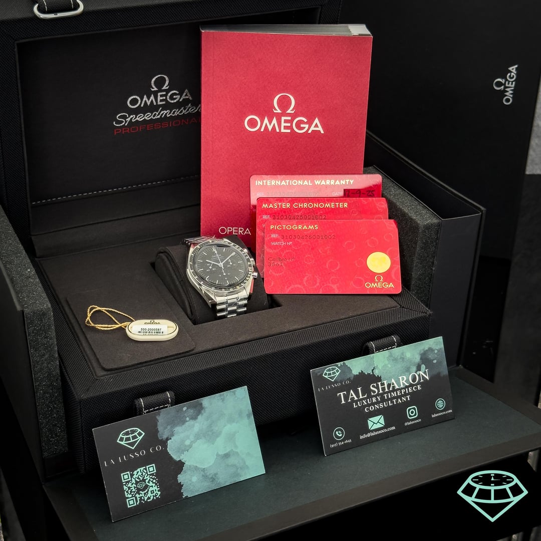 ⌚ Omega Speedmaster Professional Moonwatch “Sapphire Sandwich” Timestamp: [https://imgur.com/a/2YypwzE](https://imgur.com/a/2YypwzE) Gallery: [https://imgur.com/a/m1hazaP](https://imgur.com/a/m1hazaP) 🤑 Price: 8,199 + 🏷️ 📇 Ref: 310.30.42.50.01.002 🗓️ Year: December 9, 2025 🔍 Condition: Brand new – fully stickered ⏱️ Dial: Black 🔗 Bracelet: Bracelet 📦 Set: Complete – triple boxed 🌴 Location: FL ✈️ Shipping: FedEx Overnight Insured 📸 IG: 💎⌚️ u/lalussoco 💬 DM to secure this piece or request additional photos & videos Bridging heritage and contemporary desire, this exceptional timepiece offers collectors the ultimate Moonwatch experience—maintaining every element of NASA's flight-qualified design while revealing the mechanical artistry through sapphire crystal front and back. The "Sapphire Sandwich" configuration transforms the legendary chronograph into a showcase of horological excellence. The pristine black dial with white accents preserves the classic Speedmaster aesthetic that hasn't changed since 1969, featuring the iconic tachymeter bezel, applied indices, and trio of subdials that guided astronauts across 380,000 kilometers of void. Yet the exhibition caseback unveils Omega's exceptional caliber 3861 movement—the Master Chronometer certified evolution featuring Co-Axial escapement and enhanced anti-magnetic properties. The robust 42mm stainless steel case maintains the asymmetrical lug design and twisted lugs that protect the chronograph pushers, while the sapphire crystals offer scratch resistance and clarity that traditional Hesalite cannot match. The five-link stainless steel bracelet completes this sophisticated package with both heritage appeal and modern refinement. For discerning collectors seeking the perfect balance between historical authenticity and contemporary horological advancement, this Sapphire Sandwich delivers the soul of space exploration with the transparency that reveals why this movement represents the pinnacle of chronograph evolution.