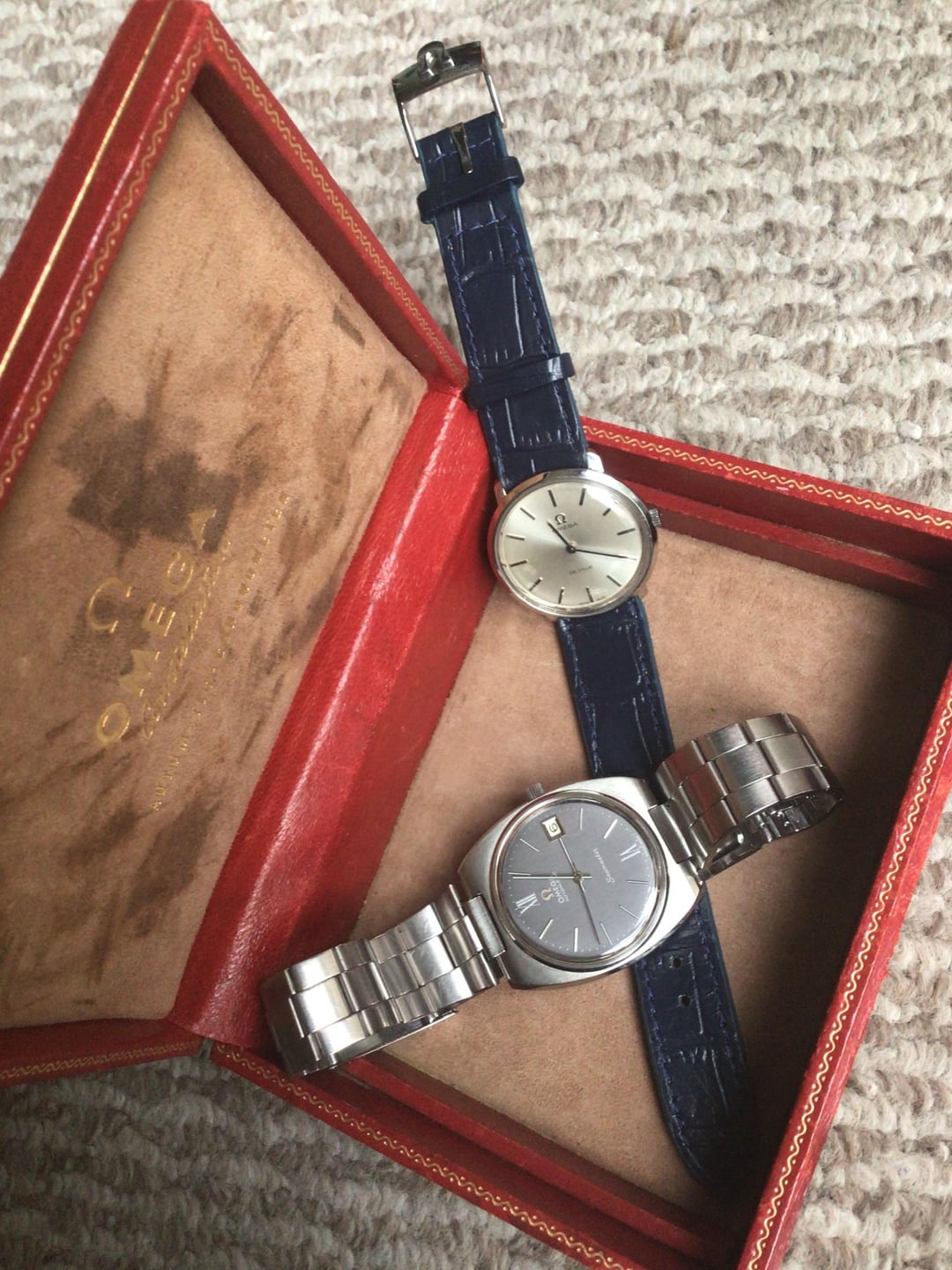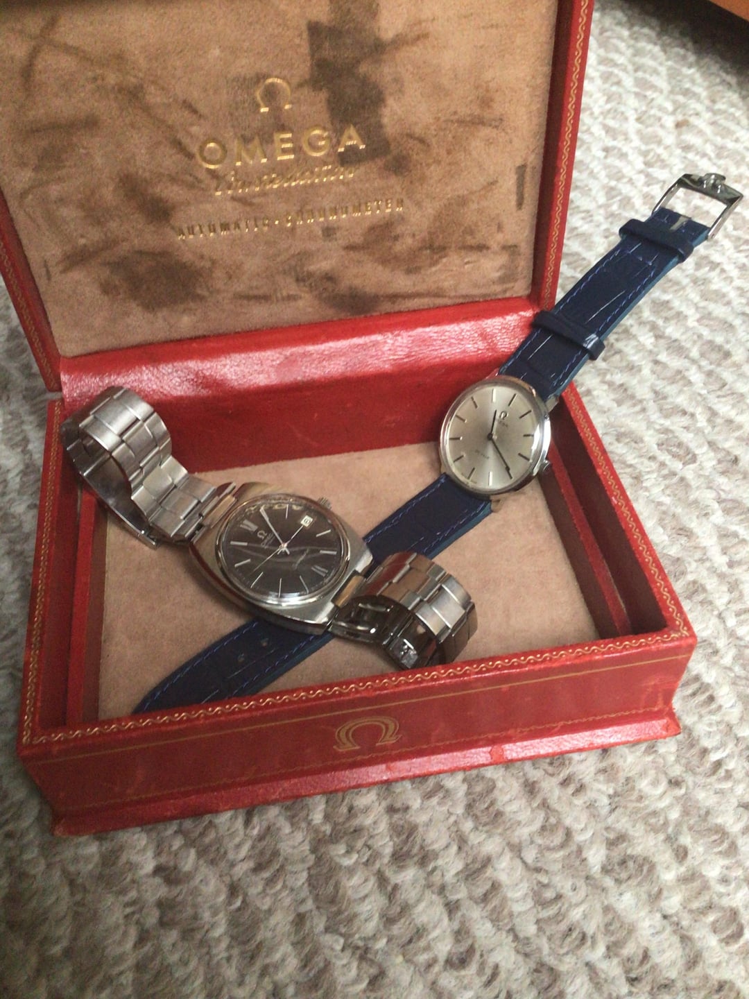 Consolidating my neo vintage collection in fewer pieces. Watches only : -SEIKO Lord Matic -300 -UNIVERSAL GENEVE manual -370 -KING Seiko -590 -7750 valjoux swiss mikro with French only day -640 -Omega DeVille Tool104 manual-680 -Omega Seamaster C case automatic-880 OPEN TO UPtrade only . package deal cheaper