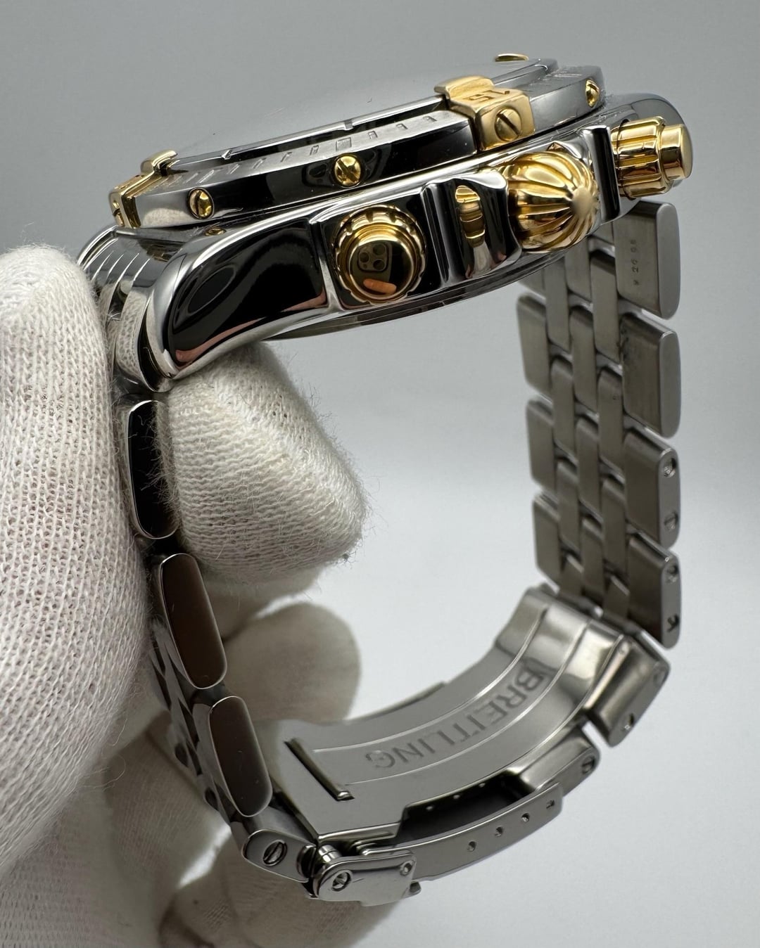 This Breitling Chronomat Evolution Ref. 2460636 is presented in all-original, two-tone configuration and remains in excellent to like-new condition. The case shows virtually no signs of wear, retaining its crisp lines and strong presence on the wrist. The original blue dial is exceptionally well preserved, featuring gold Roman numerals and matching gold hands that provide strong contrast and excellent legibility. The unidirectional bezel operates smoothly and securely, reflecting the robust construction the Chronomat line is known for. The original Breitling bracelet shows no stretch and comfortably fits a wrist up to approximately 7.2 inches (18.5 cm). Powering the watch is Breitling’s automatic chronograph movement, professionally serviced in January 2026 and functioning properly across all complications. This example is further complemented by its original Breitling certificate and papers dated 2008, making it a complete and highly attractive offering for collectors seeking a refined yet sporty Chronomat Evolution. **Reference:** B1335611 **Size:** 44mm **Year:** 2008 📜 Includes: Original papers 💵 Price: $3,750 + FREE overnight shipping with FedEx fully insured. [Timestamp](https://imgur.com/a/eLbrzuj) 🔗 Other Listings: [profile](https://www.reddit.com/u/BoghossianJewelry/s/vm81HAdB7o) | [watchrecon](https://www.watchrecon.com/?query=BoghossianJewelry&last_days=0) 🔥 Follow us on [Instagram](https://www.instagram.com/bogossiajewelers) 📍 Location: New York 🔒 Authenticity: 100% guaranteed, buy with confidence. We have 160+ reviews on Chrono24 with 180+ transactions, and Excellent rating score on Trustpilot. Visit our [profile](https://www.reddit.com/u/BoghossianJewelry/s/vm81HAdB7o) for links and references. 📦 Domestic Shipping: Ships with FedEx overnight, within 24 business hours of payment, from New York, NY to CONUS. The shipment is fully insured against damage, loss or theft. 🌍 International Shipping: Incurs an additional $100. 💳 Payment: Crypto (+2%), PayPal/CC (+4%), Web, or Face-to-face deal in NY. 🔐 [Seller References](https://bogossia.com/authenticity) 📸 [IG: @bogossiajewelers](https://www.instagram.com/bogossiajewelers)