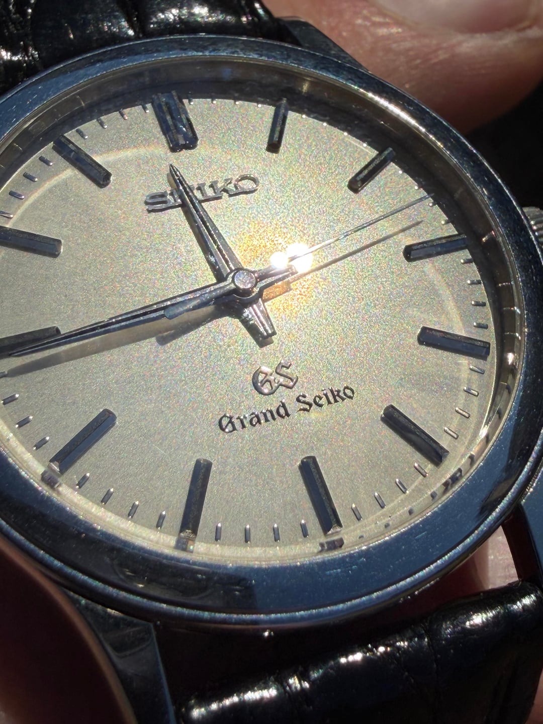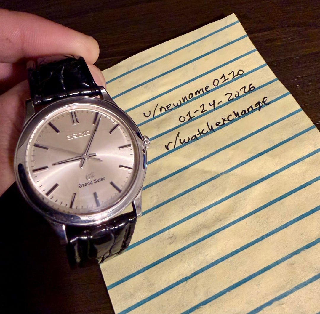 Offering here a JDM-only Grand Seiko SBGS009, featuring the GS 9581 high-accuracy quartz movement, Zaratsu polished case/markers and a classic silver sunburst / champagne-toned dial. This is an uncommon reference, rarely seen for sale in the US. Watch is in TX, USA right now and priced “all-in”, shipping included. This is an exceptional, dress-focused Grand Seiko timepiece. At approximately 36mm across (inclusive of the crown.) and just ~7mm thick, it wears incredibly light and elegant on the wrist. I have a 6.75in wrist and this watch just melts right into it as you can see in the wrist shot. The no-date layout keeps the dial perfectly balanced, and the HAQ movement has been nothing short of flawless — this watch has not drifted even one second during my ownership. ⸻ Details •Reference: Grand Seiko SBGS009 (9581-7020) •Movement: Grand Seiko 9581 High Accuracy Quartz (rated ±10 sec/year) •Case: Stainless steel •Crystal: Sapphire •Dial: Silver sunburst featuring a subtle champagne hue with Zaratsu polished markers and applied indices all the way around. •Functions: Time only, no date •Size: 34.5mm case × 7mm thick. •Strap: Black crocodile leather strap (generic) with original GS signed clasp •Accessories: Double boxed in OEM inner & outer green Grand Seiko branded boxes, with original watch pillow, matching microfiber cloth and original instruction manual. ⸻ Condition Excellent to near mint condition. Very lightly worn and presents extremely well. Crystal, case, indices, crown, GS buckle and dial are all excellent. The watch is keeping outstanding time, exactly as expected from a GS HAQ. No functional or cosmetic issues whatsoever. ⸻ 📍 Location: Dallas, TX 💰 Asking: $899 + shipping to CONUS - reasonable offers are welcome. NO TRADES. 💳 Payment: PayPal F&F or Zelle 📦 Shipping: to CONUS. Happy to provide additional photos, video, or timestamps on request.