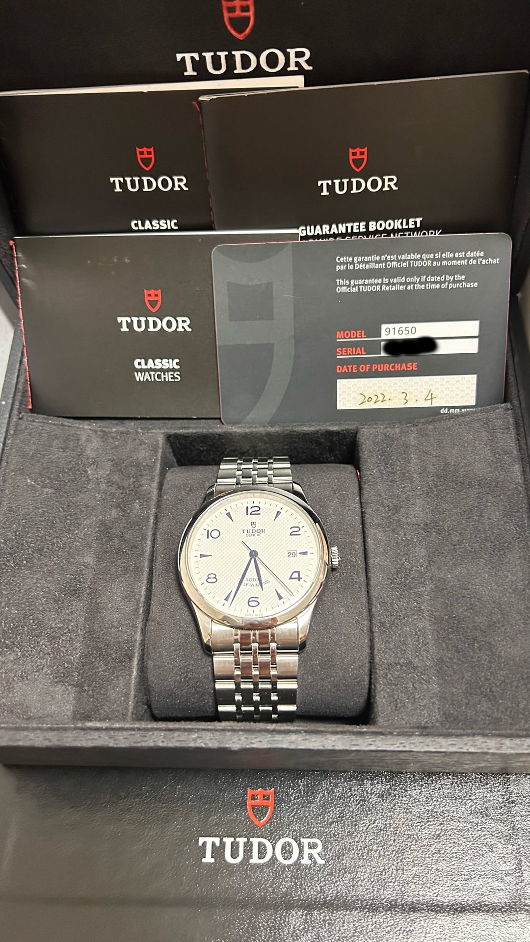 Up for sale is a 2022 Tudor 1926 Opaline Full Set 91650 41mm. It comes with a warranty card dated 2022, Tudor inner and outer boxes, and three Tudor booklets. It is still under warranty (03/2022 - 03/2027). ***The authenticity is 100% guaranteed – the watch has been thoroughly inspected and authenticated prior to listing. Feel free to check out my website*** **Tonneau Atelier** ***in my profile.*** Price: $1299. Payment via PayPal or Wise is preferred. No trades please! Watch is in Chongqing (known as the Cyberpunk City), China. I will pay the customs duties or tariffs for buyers located in United States. Watches will be shipped via FedEx, which delivers to your doorstep in just four days. Worldwide shipping and I am willing to ship this watch anywhere with buyers paying for the shipping. If you really love this watch and pay fast, I will offer free shipping! Feel free to ask for any custom timestamps or videos, I am happy to send them. Please don't hesitate to ask me any questions, thank you! Timestamp: [https://imgur.com/a/H2Itbc4](https://imgur.com/a/H2Itbc4)
