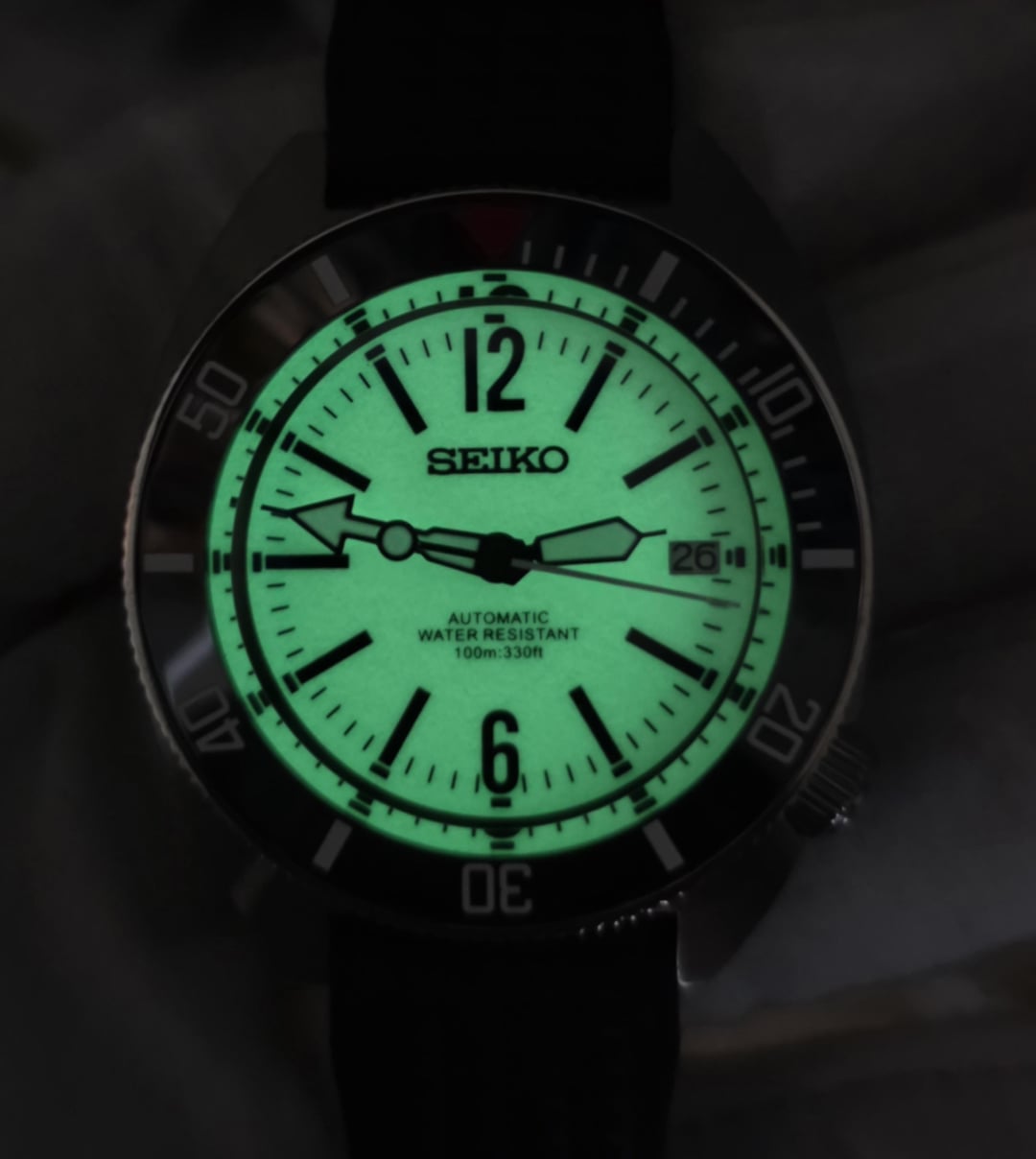 The watch boasts Seiko's NH35 automatic movement. Specs: * Sapphire crystal * Screwdown crown * Screwdown caseback * Ceramic rotating bezel * Fully lumed dial (very bright and long lasting) * Tested to 80m water resistance. * Case diameter: 42mm * Lug to lug: 45mm * Lug width: 20mm * Aftermarket case, caseback, dial, hands and strap $150 USD each including tariffs and shipping (there are two of these as seen in the timestamp) Payment via PayPal F&F or Wise or etransfer Shipping speed: 1-4 business days worldwide. (Shipping outside of Canada and CONUS will be extra $$) Shipping from Manitoba, Canada Timestamp: in the last pic I have other Seiko NH35 watches as well. Message me if interested. Refer below: Turquoise dial Nautilus: https://imgur.com/a/vHPDHET ($200) Skelton AP (NH70): https://imgur.com/a/MazEuyI ($200) Santos White dial: https://imgur.com/a/OpWDssz ($200) Gold Daytona: https://imgur.com/a/pXPrdfE ($150)