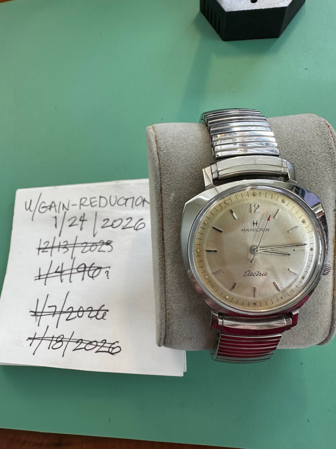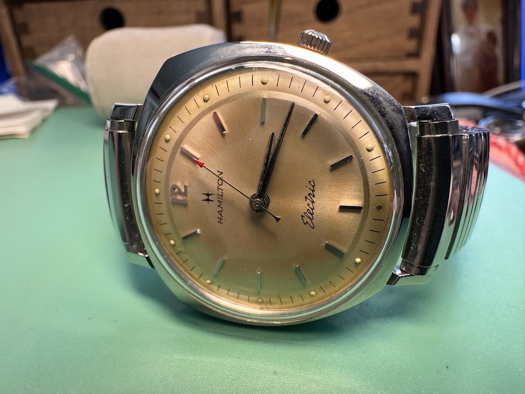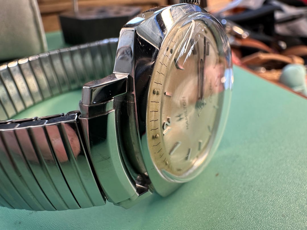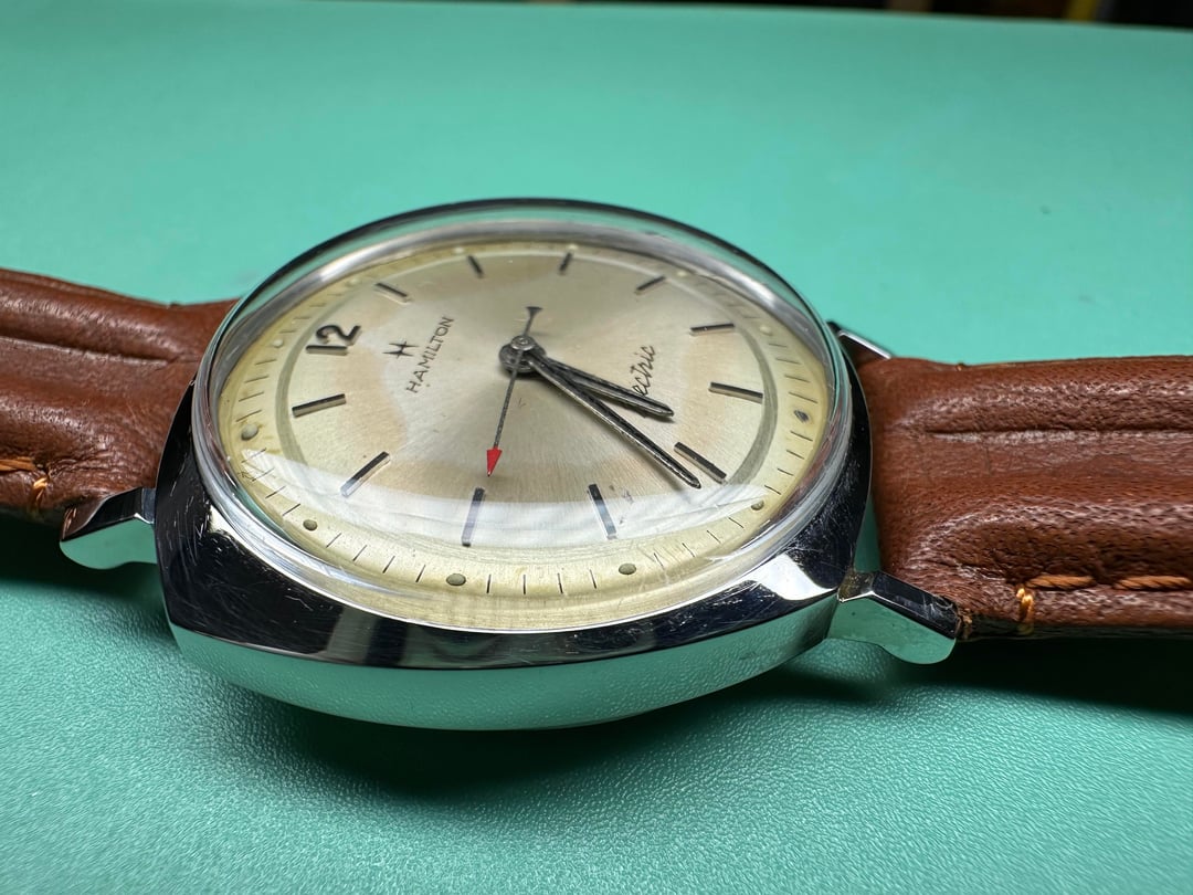 **The Story** This is a Hamilton Sea-Lectric II, originally released circa 1962. It features the famous asymmetric stainless steel case designed by Richard Arbib and was manufactured by the Star Watch Case Company in Lancaster, PA. While the exterior is pure 1960s "Space Age" cool, the internals have been upgraded for the modern era. **The Movement Upgrade** The original, notoriously finicky electric movement has been replaced with a high-quality Swiss Ronda quartz movement. While purists may prefer the original, this conversion makes the watch a significantly better daily wearer. • Worry-Free Reliability: This Ronda movement keeps near-perfect time and is extremely durable compared to the original 505 electric movements. • Easy Maintenance: It runs on a standard 371 (SR920SW) silver oxide battery. These are inexpensive and available at almost any drugstore. • Authentic Aesthetic: The stainless steel case (Ref. P575700), original dial, and red-tipped seconds hand are all preserved. **Premium Longines Bracelet** This watch comes paired with a leather strap and two Speidel bracelets. However, I also have a Longines period-correct Milanese mesh bracelet. It features the iconic "winged hourglass" logo embossed on the textured clasp. These high-quality vintage mesh bracelets are highly collectible on their own and provide an industrial look that perfectly matches the stainless steel case. I’d ask for $99 if that is to be included. **Quick Specs** • Case Material: Stainless Steel (Star W.C. Co.) • Case Reference: P575700 • Movement: Ronda Swiss Quartz (Conversion) • Lug Width: 18mm • Battery Type: SR920SW / 371 • Bracelet: Vintage Longines Mesh with winged hourglass logo **Payment & Shipping** $399 shipped in CONUS without Longines mesh. Accepted: Venmo or PayPal Friends & Family (F&F). PayPal G&S: Accepted only if you have at least five (5) confirmed transactions on r/WatchExchange, and you must add an additional 5% to cover the fee.