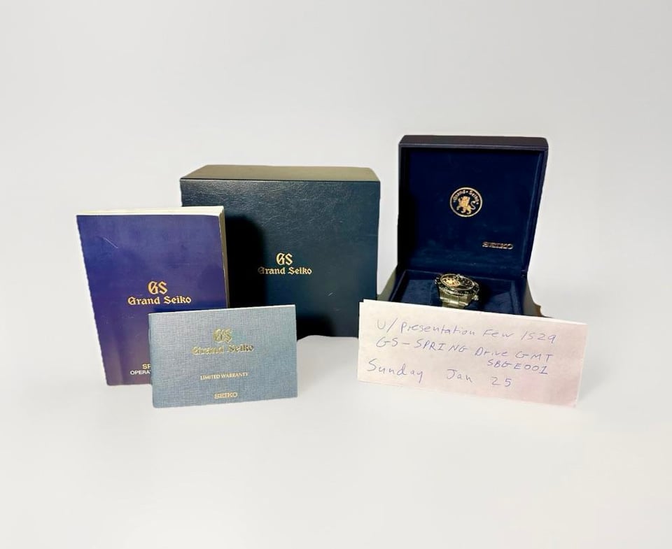 Today, I have a Grand Seiko Sport GMT 44MM Black Dial Steel Bracelet (SBGE001). I picked this up a few weeks back on Grailzee, but it is unfortunately a little too large for my taste. The Grand Seiko Sport GMT (SBGE001) features a 44mm steel case with a sapphire crystal bezel. The black dial is a great example of functionality, including a red GMT hand for tracking an additional timezone, a power reserve indicator, and a convenient date window. The steel bracelet offers versatility and a secure fit on the wrist. This timepiece is in fantastic condition for a 12 year old watch. There is a small wear scratch on the bracelet shown in the pictures, but is barely noticeable and may be polished out easily by the purchaser. This Set includes the boxes (inner and outer), booklet, warranty booklet, but no card. The watch has been tested and authenticated by Bennisson Watch Repair in Florida and comes with the printed appraisal, as well as the original authentication card from its first owners purchase through eBay. Price: $3100 shipped Trades: happy to entertain any trades or trade cash combos Specifications: CIRCA: 2013 CASE MATERIAL: Stainless steel CASE DIAMETER: 44mm BRACELET MATERIAL: Stainless steel BRACELET SIZE: 7.4 Inches / 187.9mm (FULL LINKS Including .5 Links) DIAL: Black MOVEMENT: Spring drive automatic FUNCTIONS: Power reserve, GMT, date CALIBER: 9R66 BOX: Yes PAPERS: Yes Shipped to the CONUS or best offer. Item will be shipped NEXT DAY after payment. Happy to answer any questions or discuss further!! Thanks for Looking!