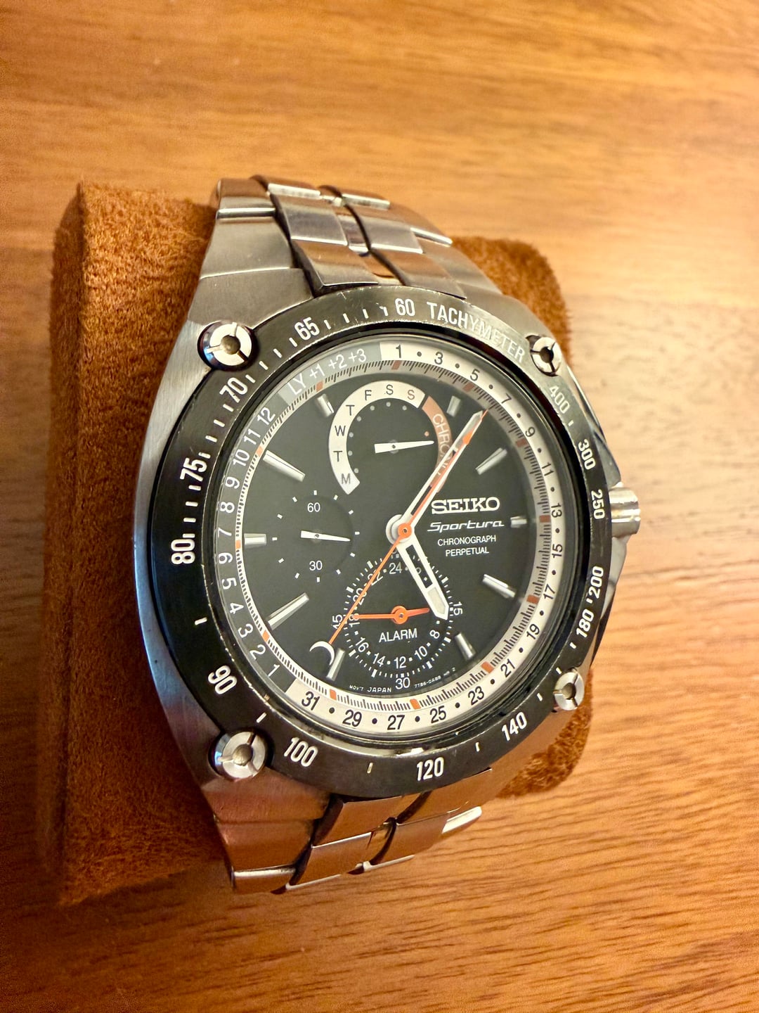 [WTS] Seiko Sportura Alarm Chronograph Perpetual Cal. - SPC047P1 - $299 For sale: Seiko Sportura Alarm Perpetual Calendar Chronograph Reference: SPC047P1 Condition: Pre-owned but in great condition. Keeps time perfectly and works with no issues. Selling because it’s not getting the wrist time it deserves. Location: Washington DC Metro USA Price: $299 + label Payment: Venmo, PayPal F&F / G&S (buyer must account for fee), or Zelle Shipping: USPS insured + tracked. CONUS only unless discussed. Details: - Watch only - box lost years ago. - 44mm case / 12mm case thickness - Sapphire crystal - 7T86-0AB0 quartz movement. - Functions: hours, minutes, seconds, day-date, alarm, leap year indicator, chronograph. - Three sub-dials displaying: day of the week, 60 minutes and a duel 60 seconds and 24 hours. - Stainless steel case with a stainless steel bracelet and deployment clasp. - Water resistant at 100 meters / 330 feet. - Priced based off of what I could find on eBay and other places off the internet 🤷♂️ - Happy to conduct a FaceTime call to provide video, close-ups, and any angle you need. - If in the Northern Virginia / National Capital Region, I’m also happy to meet up in person.