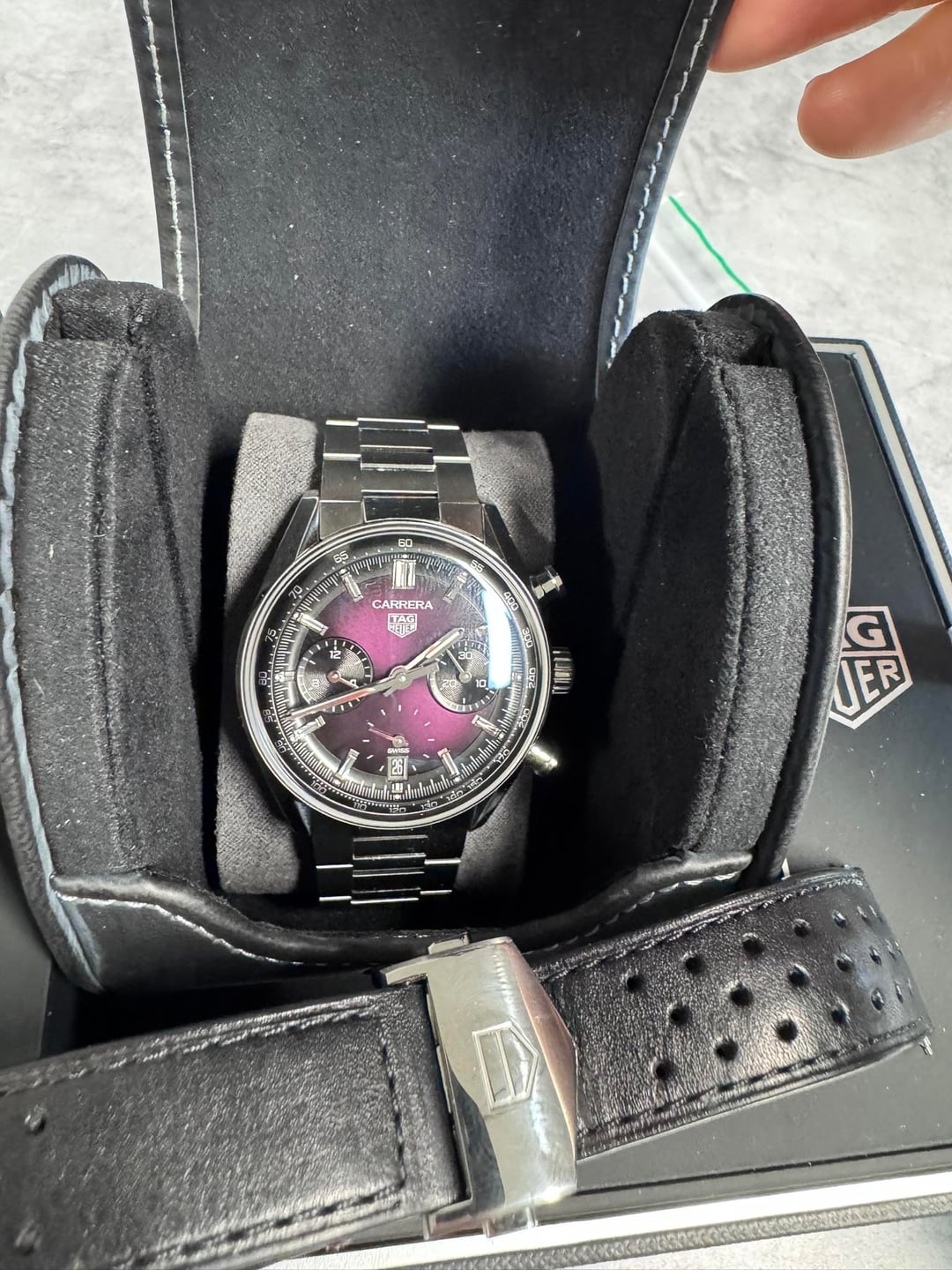 ![Thumbnail [WTS] 2025 Tag Heuer Carrera Smokey Purple CBS2219.FC6607- w/ extra Tag bracelet- gorgeous! Will Sell Quick! $4975 5](https://cdn-cf.watchpatrol.net/120x120/img/full/5deaefcf7e036af4f8c83b6d125160bae5bbd8e6.jpg)