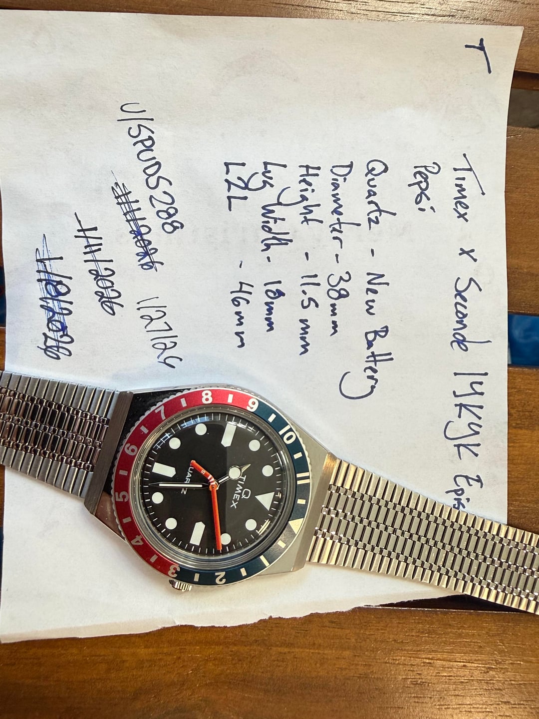 Year end cleanout of some swiss made microbrands watches that just dont get enough wear. Most are in like new condition. Timex Seconde/Second Pepsi IYKYK Episode 1 - some wear. QUARTZ. Battery just replaced. I dont have the plain outer box, otherwise a full kit with manual. One small scratch on brushed upper lugs and small marks on polished case side. Numbered out of 500. $150 Payment: flexible here, PayPal, Venmo, Zelle. Add 3% for goods/service. Free CONUS shipping. Plenty of feedback here, and can verify through eBay, instagram, WUS, FaceTime, etc.