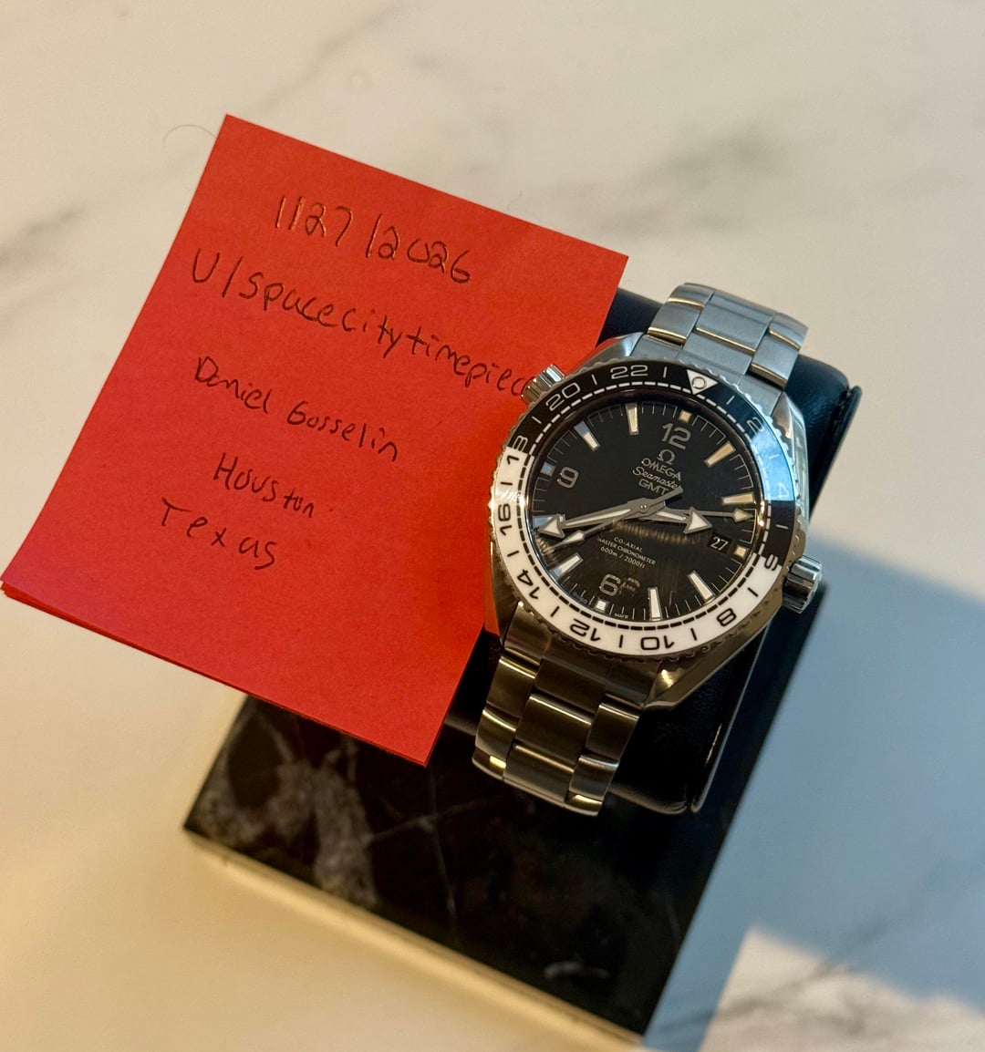 📍 Location: Houston, TX 💵 Price: $6,350 🚚 Shipping: FedEx Priority Overnight, fully insured (CONUS) ⸻ Watch Details • Brand: Omega • Model: Seamaster Planet Ocean GMT “Oreo” • Reference: 215.30.44.22.01.001 • Case Size: 43.5mm • Case Material: Stainless steel • Dial: Black • Bezel: Black & white ceramic GMT bezel • Bracelet: Stainless steel • Movement: Omega Co-Axial Master Chronometer Cal. 8906 • Power Reserve: 60 hours • Water Resistance: 600 meters ⸻ Condition Mint overall condition. One minor scratch on the clasp from normal wear, only noticeable on close inspection. Case, bezel, crystal, and dial are clean. Watch is running properly and keeping accurate time. ⸻ Included (Full Set) • Inner and outer Omega boxes • Omega warranty cards • Omega operating instructions booklet • Omega travel pouch • Extra bracelet links ⸻ Seller References I’m a Houston-based dealer with 80+ five-star Google reviews and a strong transaction history. Instagram: @spacecitytimepieces References available upon request. ⸻ Payment • Zelle, wire, or cash for local meetup • No PayPal or credit cards