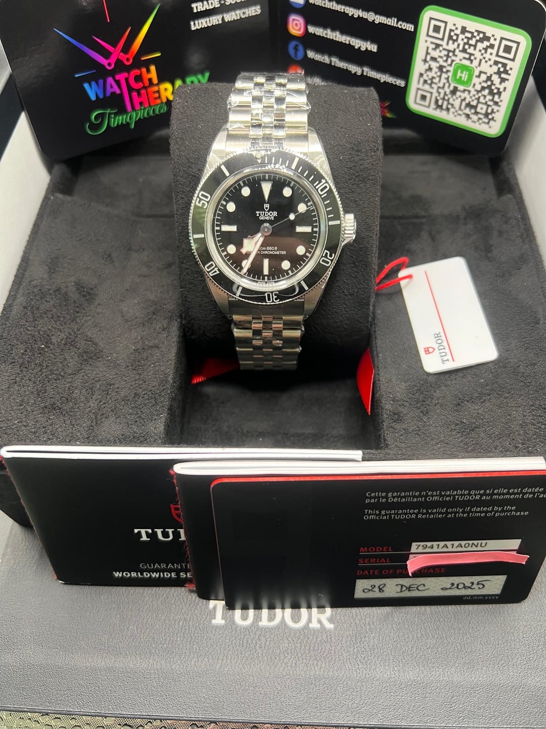 **F/S: New Tudor Black Bay 41 Monochrome Jubilee 12/25 Ref# M7941A1A0NU** **Specs:** \* Black domed dial w/silver hour markers \* Automatic self-winding \* 41mm \* Five-link Jubilee style bracelet with T-Fit clasp \* 200M Water Resistance \* 70-hour power reserve \* MT5602-U (COSC) movement **Includes**: Warranty card 12/25, double boxed, booklets, full links and tag. **Condition:** 10/10 New with stickers **Price: $4,199.00 Firm+ Insured shipping to your local FedEx for pick-up in Con US**. I am also open to a face-to-face public transaction in or around the Tampa Florida Region, within reason. I have many strong and viable references within Reddit and from Buy/Sell/Trade Watch Facebook groups. Always willing to jump on a call or meeting link to show you the watch. Thank you and please reach out if you have any questions or concerns. Florida residents may be subject to sales tax w/o a valid reseller cert. ***No Trades, TY*** **Location**: Tampa Florida **Payment:** Zelle or Wire Timestamp: [https://imgur.com/a/kPdRHI1](https://imgur.com/a/kPdRHI1) FB: Watch Therapy Timepieces IG: [@watchtherapy4u](https://www.reddit.com/u/watchtherapy4u/)