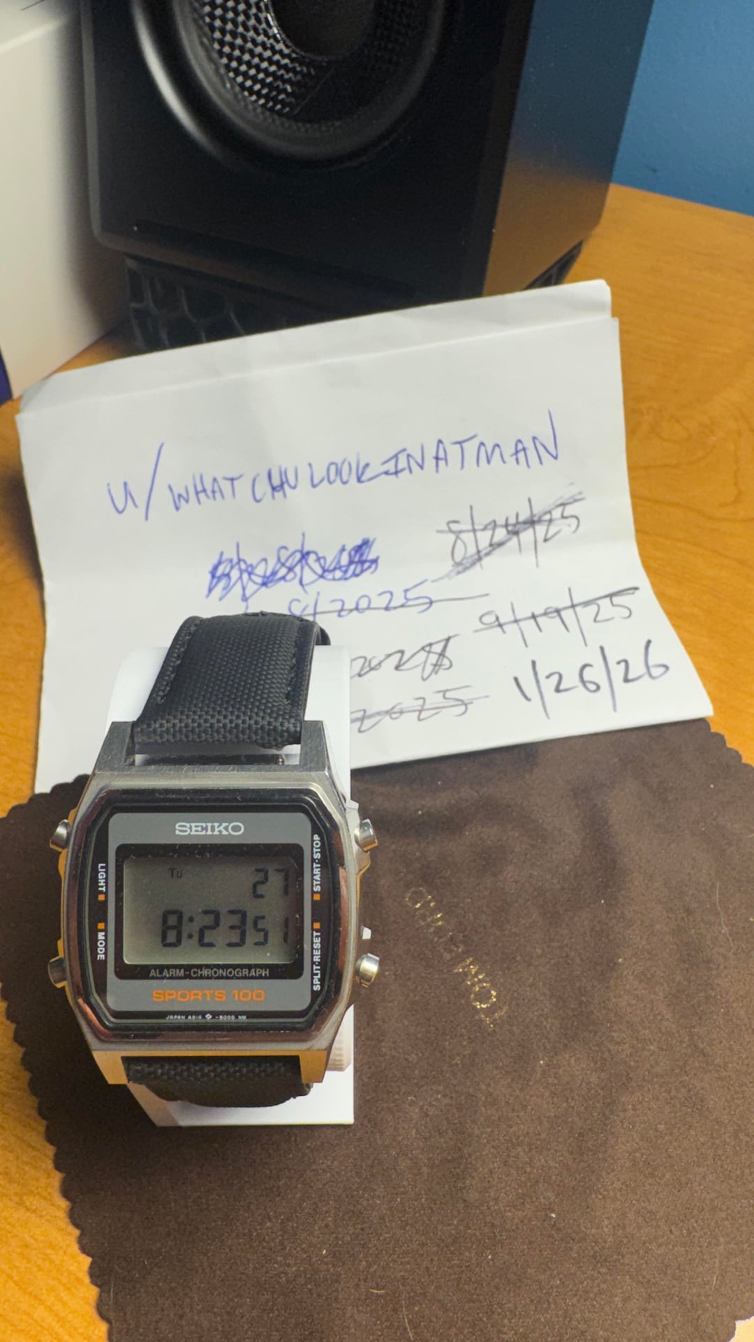 This is another one I need to let go due to my eyesight. This watch is from 1984 and every button, pixel, and light work as they should. Really cool vintage watch. It will come with a new sailcloth strap and a new orange rubber strap that matches the "Sports 100" on the face. $60 TYD. Paypal, Venmo, and Zelle work for me.