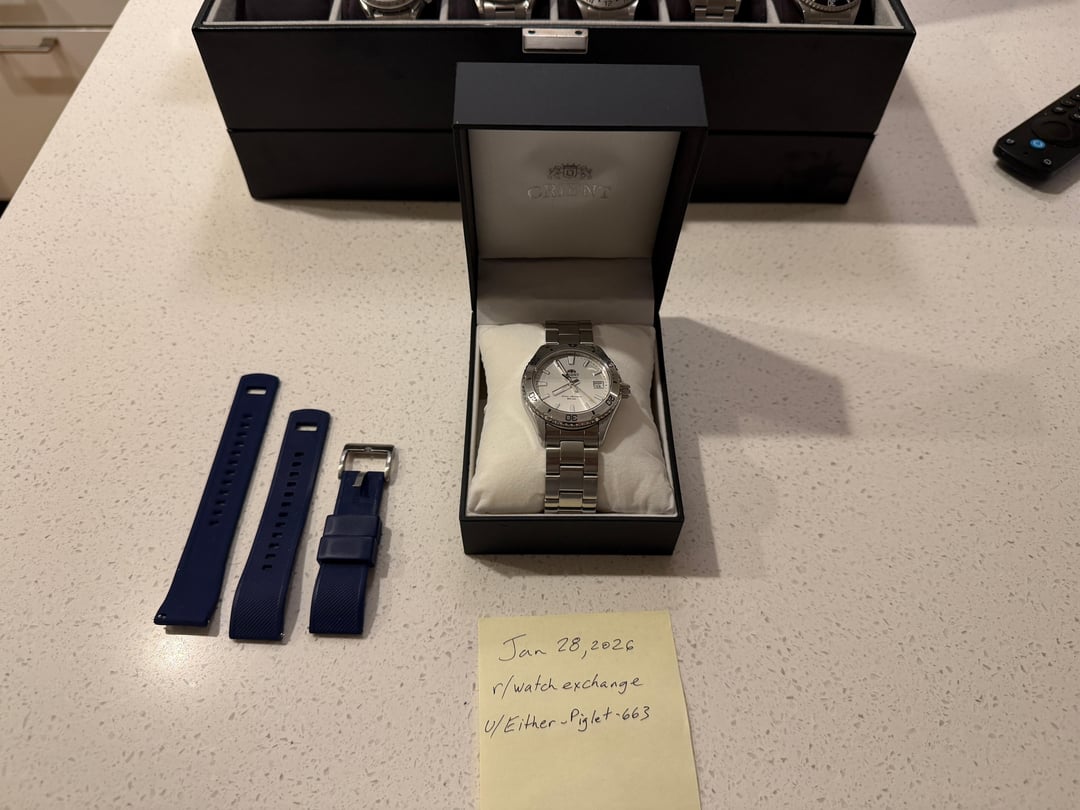 **Orient Diver RA-AC0Q03S30B** Full Kit. Box and papers. Includes blue rubber strap Price : $150 - Shipped Conus Bought it and wore it once on vacation. Just thinning my collection. 9.5/10 Condition. Not giving it a 10 because it’s not new. I can’t see any scratches on it. I can also email you the receipt. Bought from Orient on April 27, 2025 Shipping: Fedex Payment: Zelle, Paypal