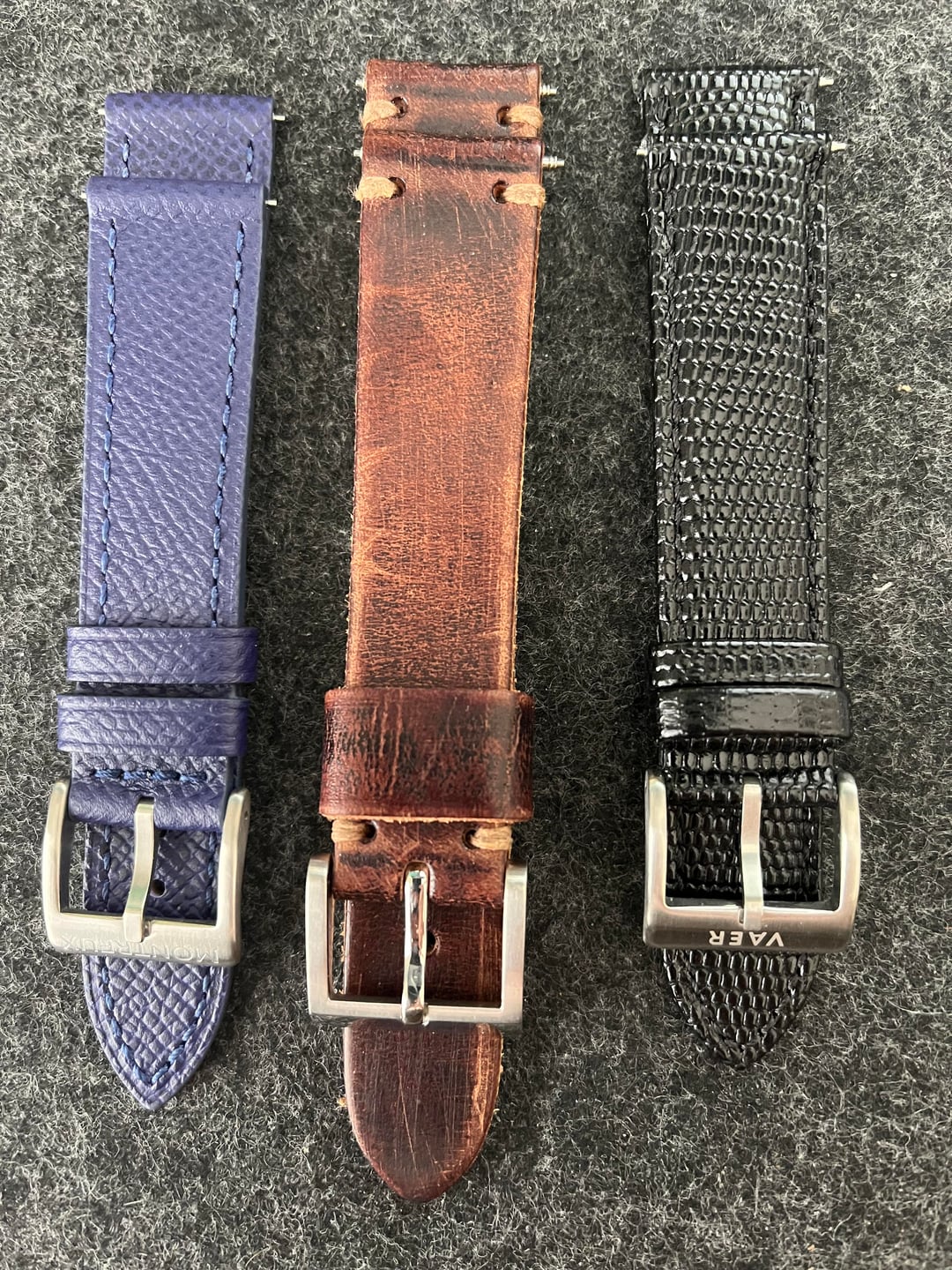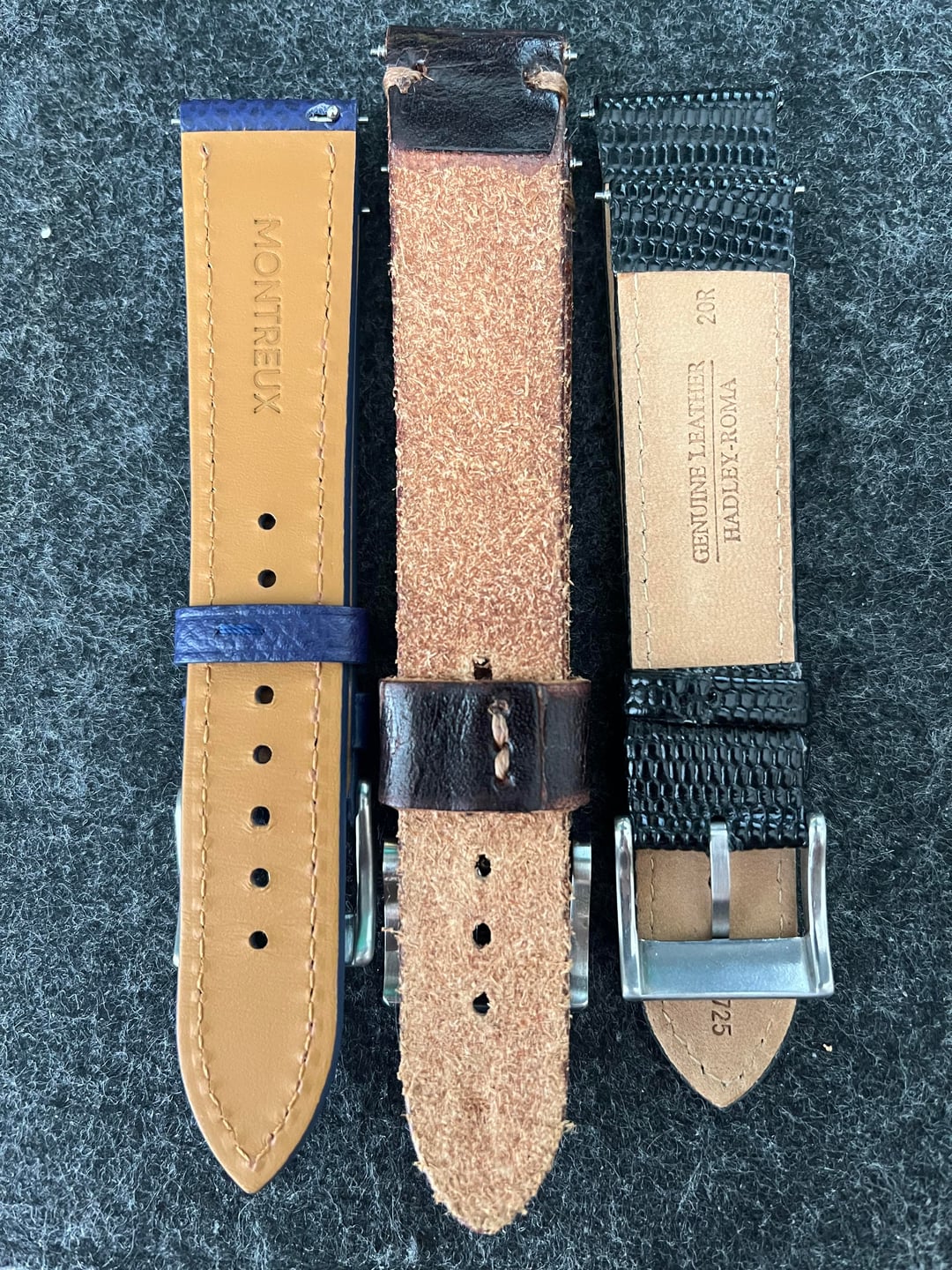 20mm Std Length Montreux - Navy Epsom Leather - New Unbranded - 2 stitch - Miltat buckle Hadley Roma - Lizard print - Vaer Buckle $50 shipped - Pics & timestamp in listing. - Zelle or Venmo FF