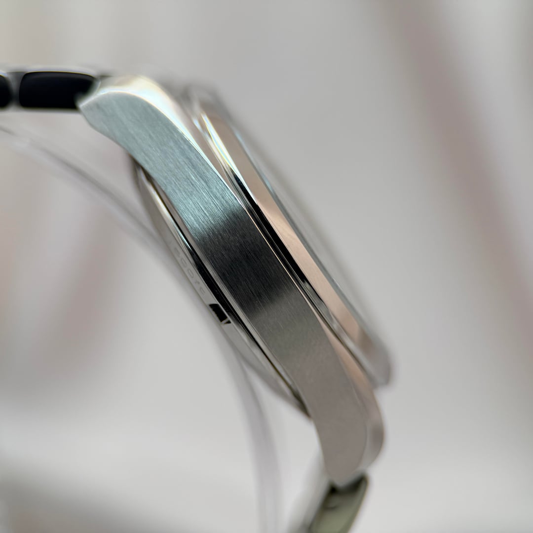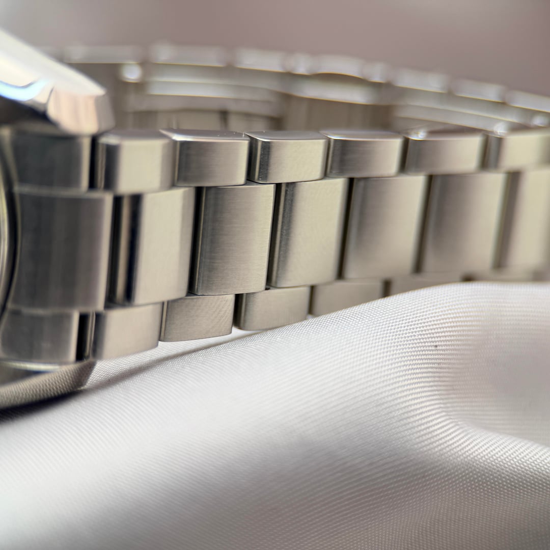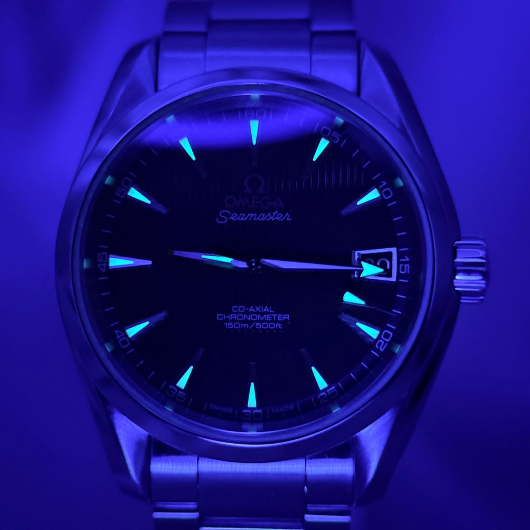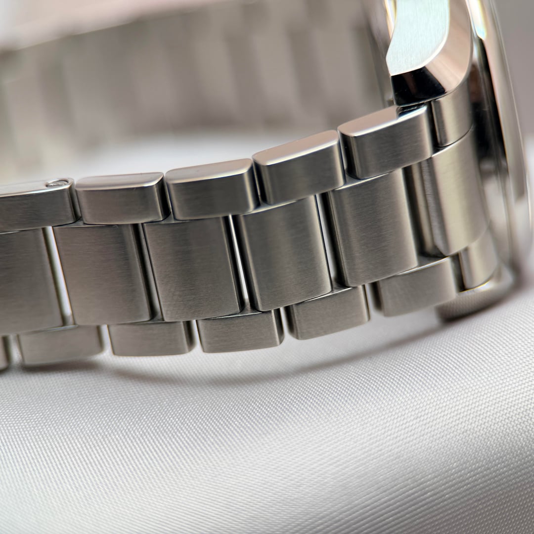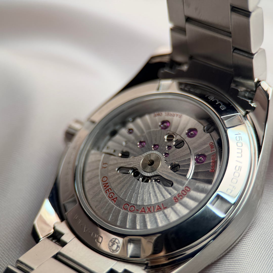 Omega Seamaster Aqua Terra 38.5mm – “Grey Skyfall Teak Dial” Ref. 231.10.39.21.06.001 | 2020 | Full Set | Excellent Price: 4150 + ship CONDITION This example is in miny condition, showing virtually no signs of wear. The grey teak “Skyfall-style” dial is crisp, clean, and beautifully preserved — a rare find, especially for a discontinued 38.5mm model. Bracelet fits up to 18 cm . INCLUDES Full Set — outer box, inner wooden box, operating instructions, all cards (warranty/pictogram/master chronometer), card holder, and bracelet links. ⸻ ABOUT THIS WATCH This 2020 Aqua Terra 38.5mm features the highly sought-after grey teak “Skyfall” dial, a colorway now discontinued and increasingly difficult to source in this condition. The horizontal teak pattern gives the dial a refined yet sporty character, shifting beautifully between charcoal, silver, and slate depending on the light. Inside beats Omega’s in-house Calibre 8500 Co-Axial, offering a smooth 60-hour power reserve, twin-barrel architecture, and strong anti-magnetic resistance. The proportions of the 38.5mm case make it one of the most versatile Aqua Terra sizes ever produced — comfortable, balanced, and perfect for daily wear. Collectors value this reference for its combination of wearability, dial aesthetics, and discontinued status, making well-preserved full-set pieces especially desirable.