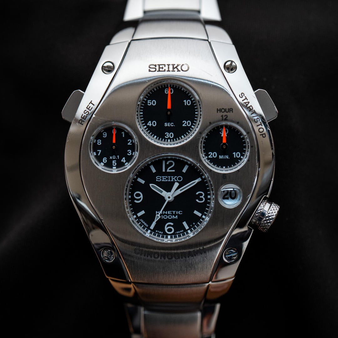 # Reference: **Model:** Citizen Campanola 214 / CTR57-1051 **Production Date:** September 2000 **Timestamp:** [https://imgur.com/a/zepssK3](https://imgur.com/a/zepssK3) **Album:** [https://imgur.com/a/GB7cJwp](https://imgur.com/a/GB7cJwp) # Features: **The Design.** The SBCG001 was recently revealed to be the US head of Seiko’s favourite release. Designed by Shinji Sato, who joined Seiko in 1983 and continues to design watches for the brand to this day, the SBCG001 Chronograph avoids a central dial altogether. Instead, it opts for four sub-dials - five, if you’re generous enough to count the date window! Sato took his inspiration from aircraft cockpit instrumentation. Often described as retro-futuristic, the design has always struck me as something else entirely. There’s a charmingly antiquated quality to it - part WWII pilot’s watch, due to its stark contrasts and simple legibility, and part Otsuka Lotec, with a mechanically inspired, industrial aesthetic. **The Movement.** The movement is classic Seiko innovation - a hybrid between electric and kinetic energy. Often referred to by Seiko as the brand’s “third movement type” (after mechanical and quartz), it functions like an automatic in that it uses a rotor to generate energy. However, instead of winding a mainspring, that energy is stored in a rechargeable long-life capacitor. You get the accuracy of quartz, with the longevity of an automatic. Capacitor replacements are needed only every 10 to 15 years - far less frequently than the typical 1–2-year battery change required by standard quartz watches. **The History.** You might have noticed the similarity between this type of hybrid movement and Seiko’s now more famous, fully automatic, “hybrid” movement - the Spring Drive. The two are certainly connected, as both movement types were hand-assembled at Grand Seiko's Shinshu Watch Studio. Seiko created the Spring Drive in the '80s but didn’t commercialise it a few years after the release of these Kinetic movements. The Kinetic series is a commercial pre-cursor to the Spring Drive, although the exact creative and historical link between the two would need to be defined by Seiko themselves. **The Warning.** As a general rule, never buy one of these high-end Kinetics unless it’s been recently serviced and had a new capacitor installed. The capacitor cannot be replaced without taking the watch completely apart, so it’s always done in conjunction with a full service. It costs \~$800 and is generally only done by Seiko. Luckily the capacitor replacement interval on these is \~15 years! # Details: **Condition:** In good condition. Just serviced by Seiko and given a fresh capacitor. With visible signs of wear on the case. **Scope**: In a generic Seiko box **Movement**: Kinetic 9T82 with 38-jewels **Dimensions:** \- Case width: 42.0mm \- Case Thickness: 13.8mm \- Bracelet Length: Up to 7.5 inches **Price:** Priced at **$2400 + shipping**. Various payment methods accepted. Not accepting trades. Transaction Fees paid by the buyer. **Of note:** Nothing to report.