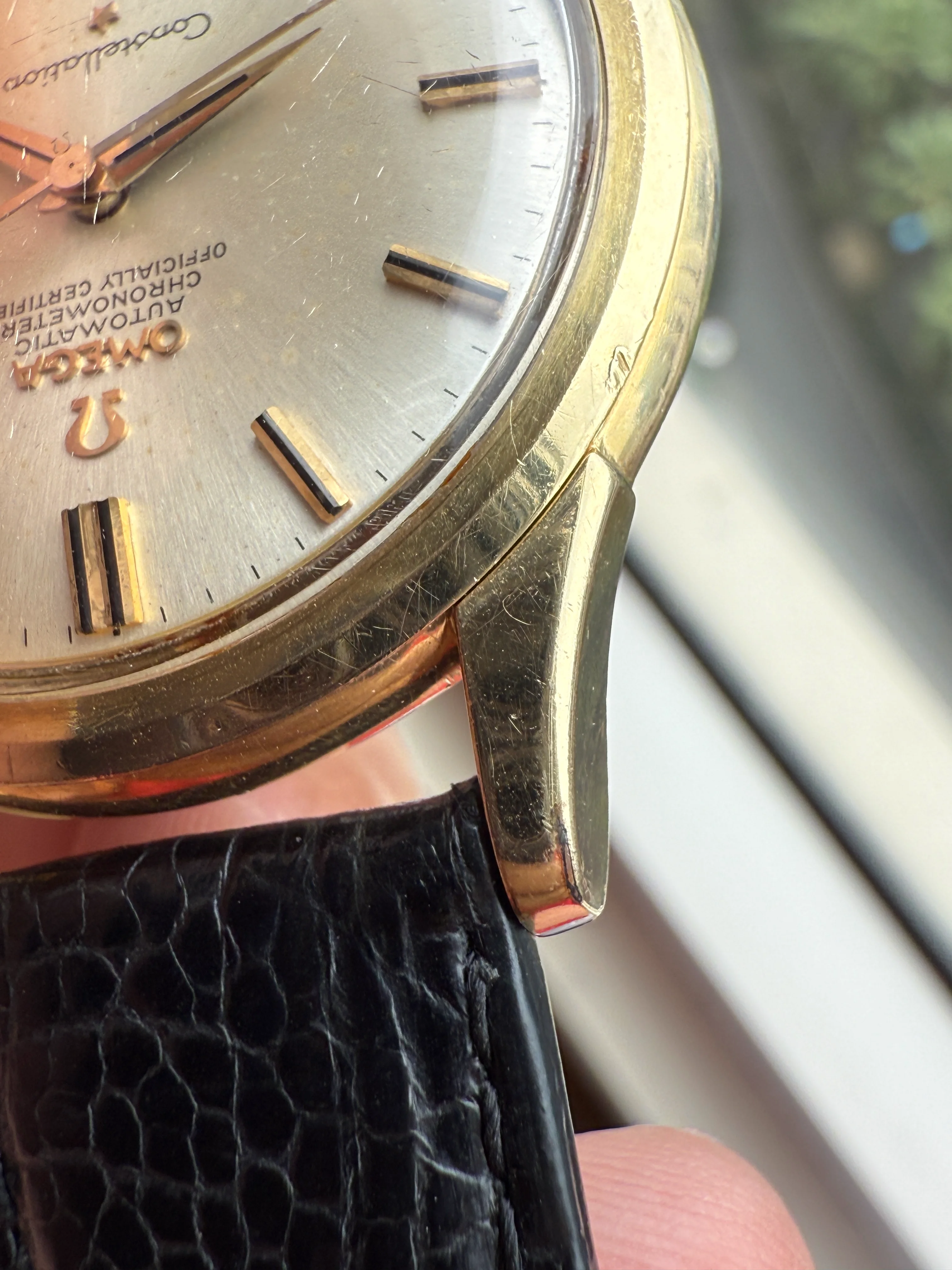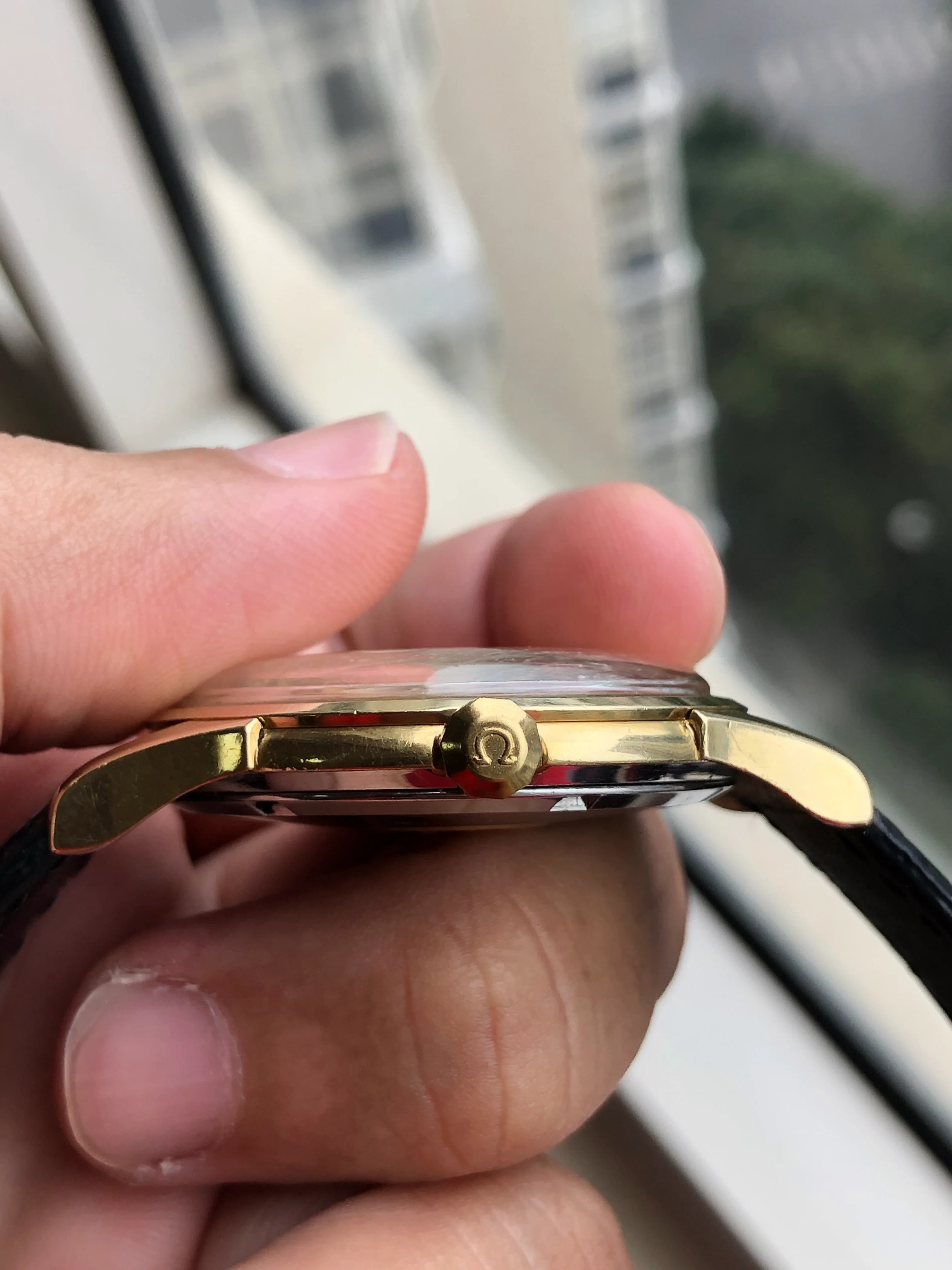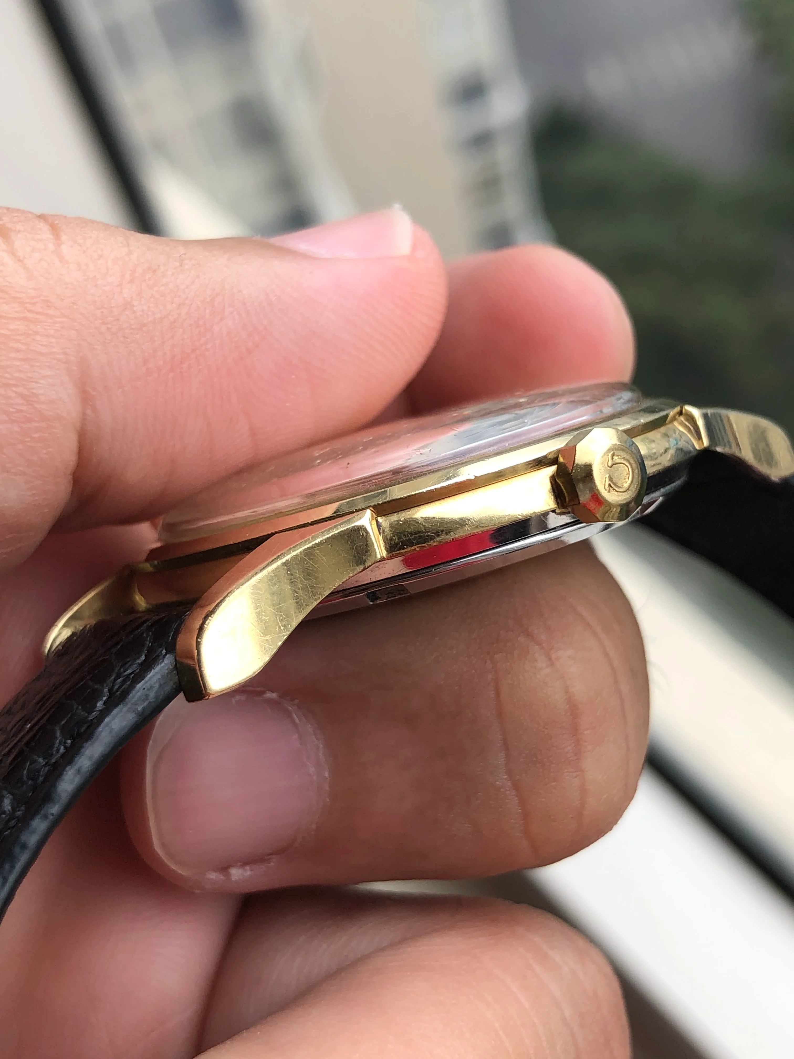 - Case: The diameter is 37mm without the crown. Original case in good condition, hairline scratches all over, some clearly scratches/chips on the bezel at 8’ and 10'. Lug size is 19mm. After market decagonal Omega crown.